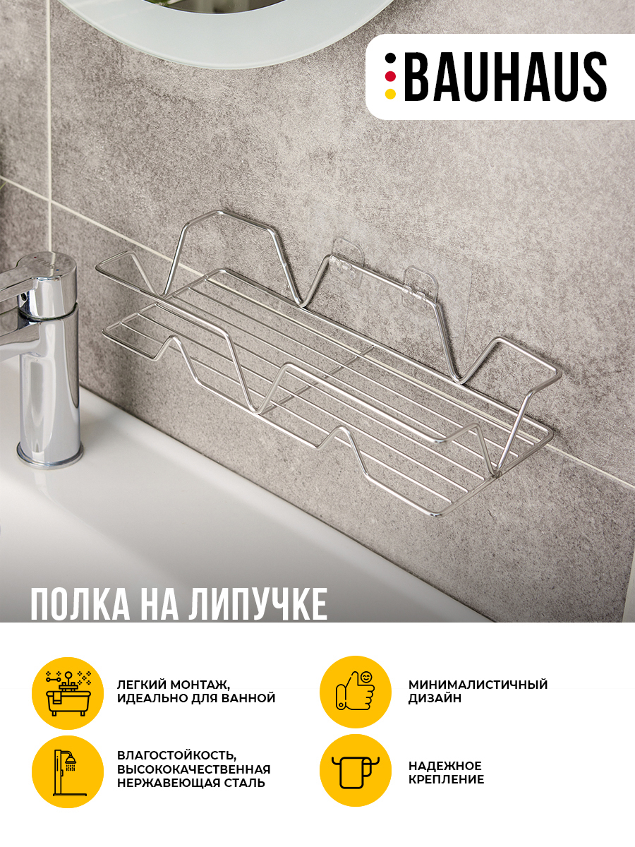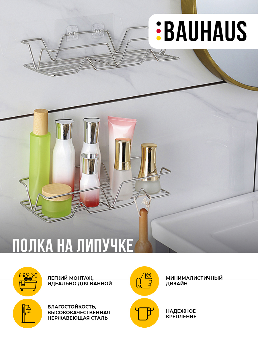 Настенная полка - отличное решение для организации пространства любого помещения - будь то кухня, ванная или душевая. Она не займет много места и вместит все необходимые баночки и бутылки. Безупречно отшлифованная нержавеющая сталь делает полку устойчивой