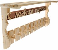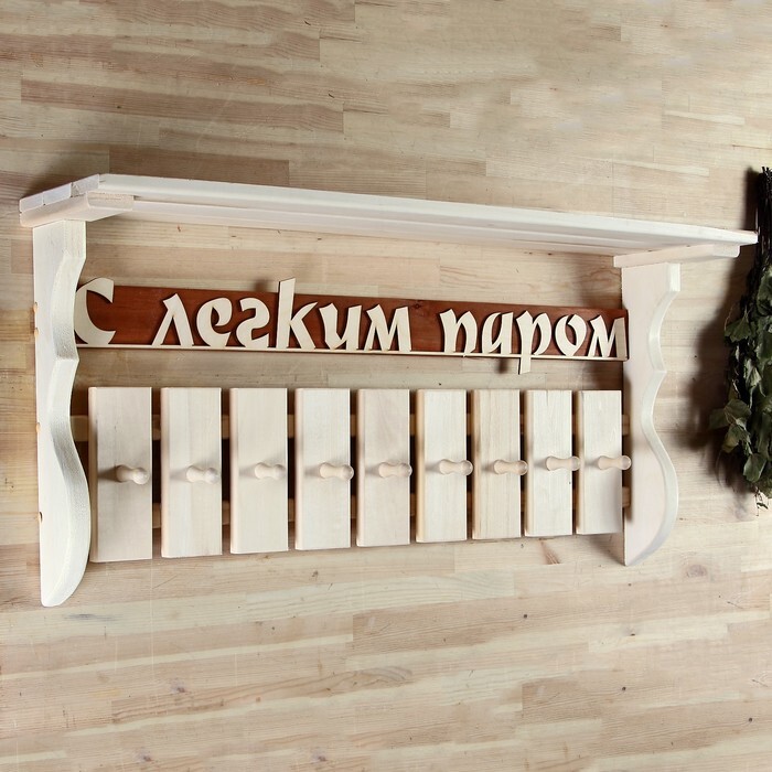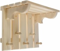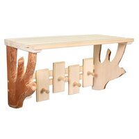 Деревянная вешалка с полочкой предназначена для помещений с высокой влажностью, таких как баня и сауна. Древесина, из которой она изготовлена, отличается устойчивостью к резким перепадам температуры и влажности, не подвержена поражению плесенью и грибком,