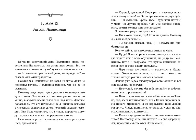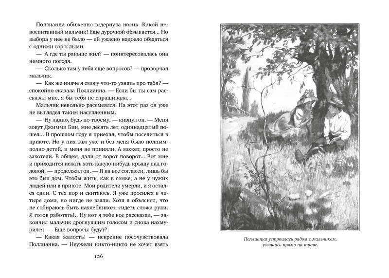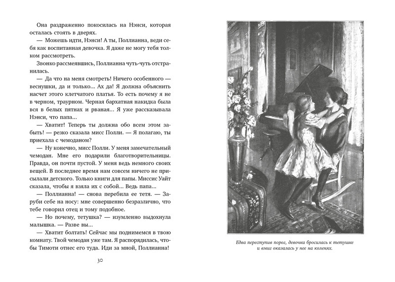 Повесть Элинор Портер «Поллианна» рассказывает о печалях и радостях маленькой девочки, которая после смерти папы вынуждена переехать к сварливой тетке, в мир строгих правил и запретов. К счастью, Поллианна успела научиться у папы замечательному умению: не