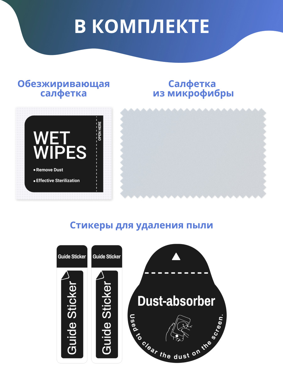 Комплектация:В комплект входят: стекло - 1 шт.; стикеры для удаления пыли - 1 шт.; влажная салфетка - 1 шт.; сухая салфетка - 1 шт.Описание:Противоударное закаленное стекло в разы увеличивает срок службы самой хрупкой части смартфона – экрана. Оно сохраня
