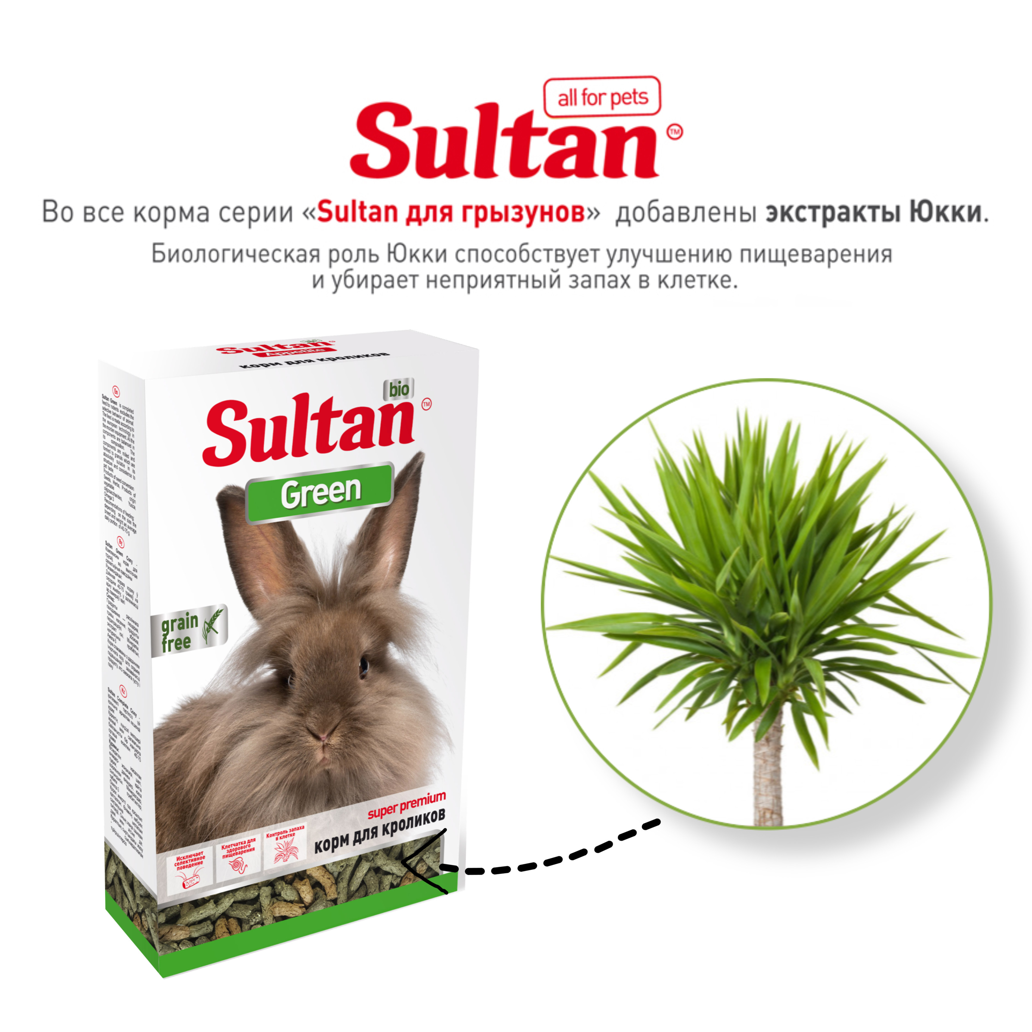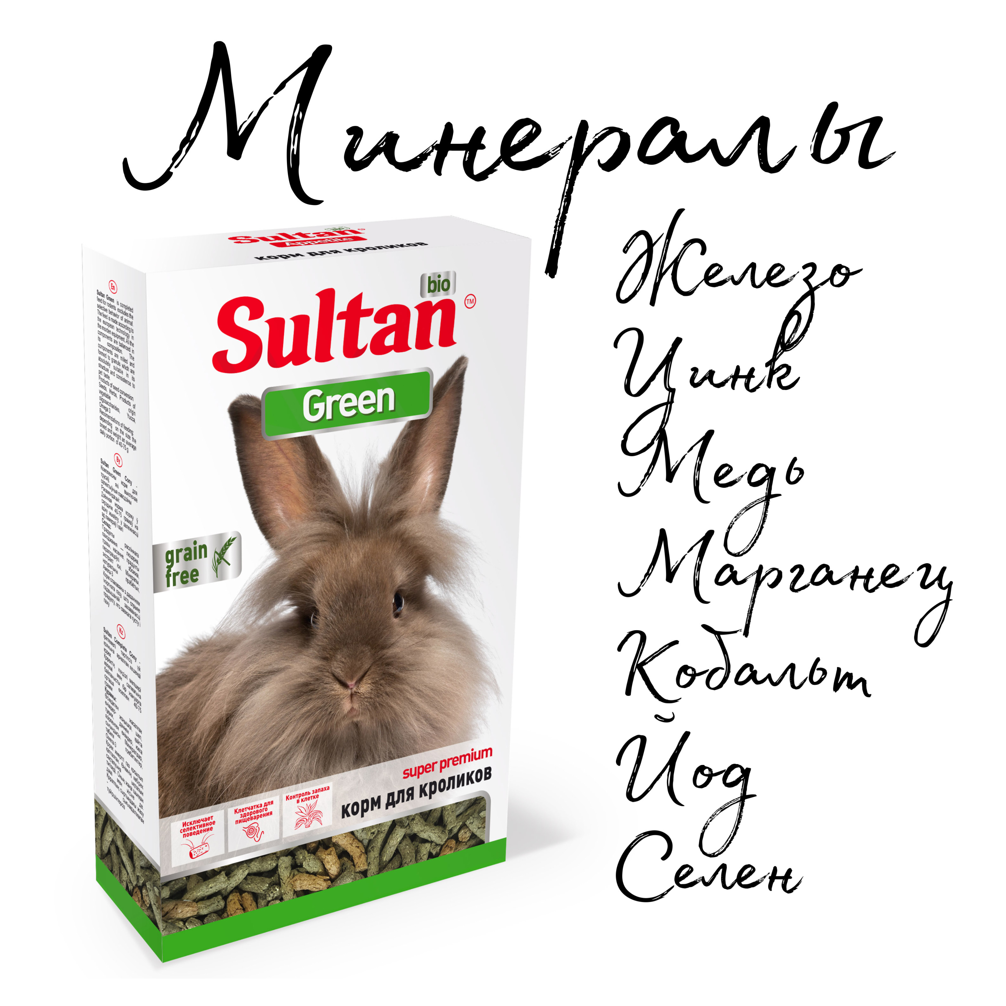 Состав:витаминно-травяная мука, люцерна, травы, продукты переработки зерна, экстракт ЮккиОписание:Sultan BIO Green – первые российские полнорационные экструдированные корма для грызунов класса супер премиумSultan GREEN для кроликов - комплексный беззернов