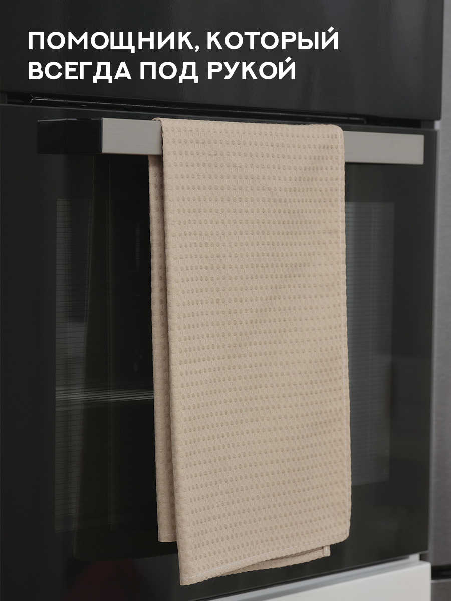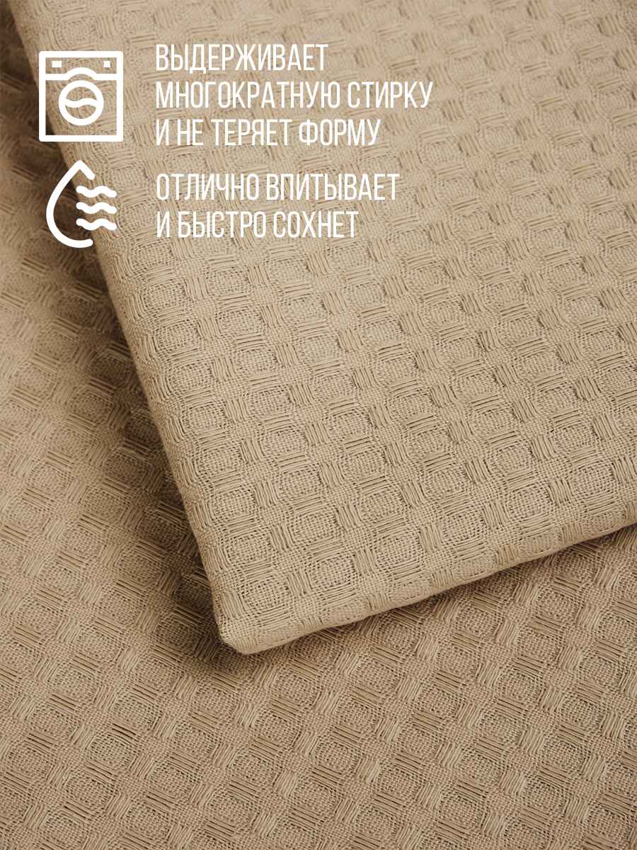 Вафельное полотенце для кухни "Премиум" в размере 47х80 см - это качественный 100% хлопок, классический дизайн в великолепном исполнении. Нейтральный бежевый оттенок делает однотонное вафельное полотенце в клетку универсальным и немарким. Ткань полотенца
