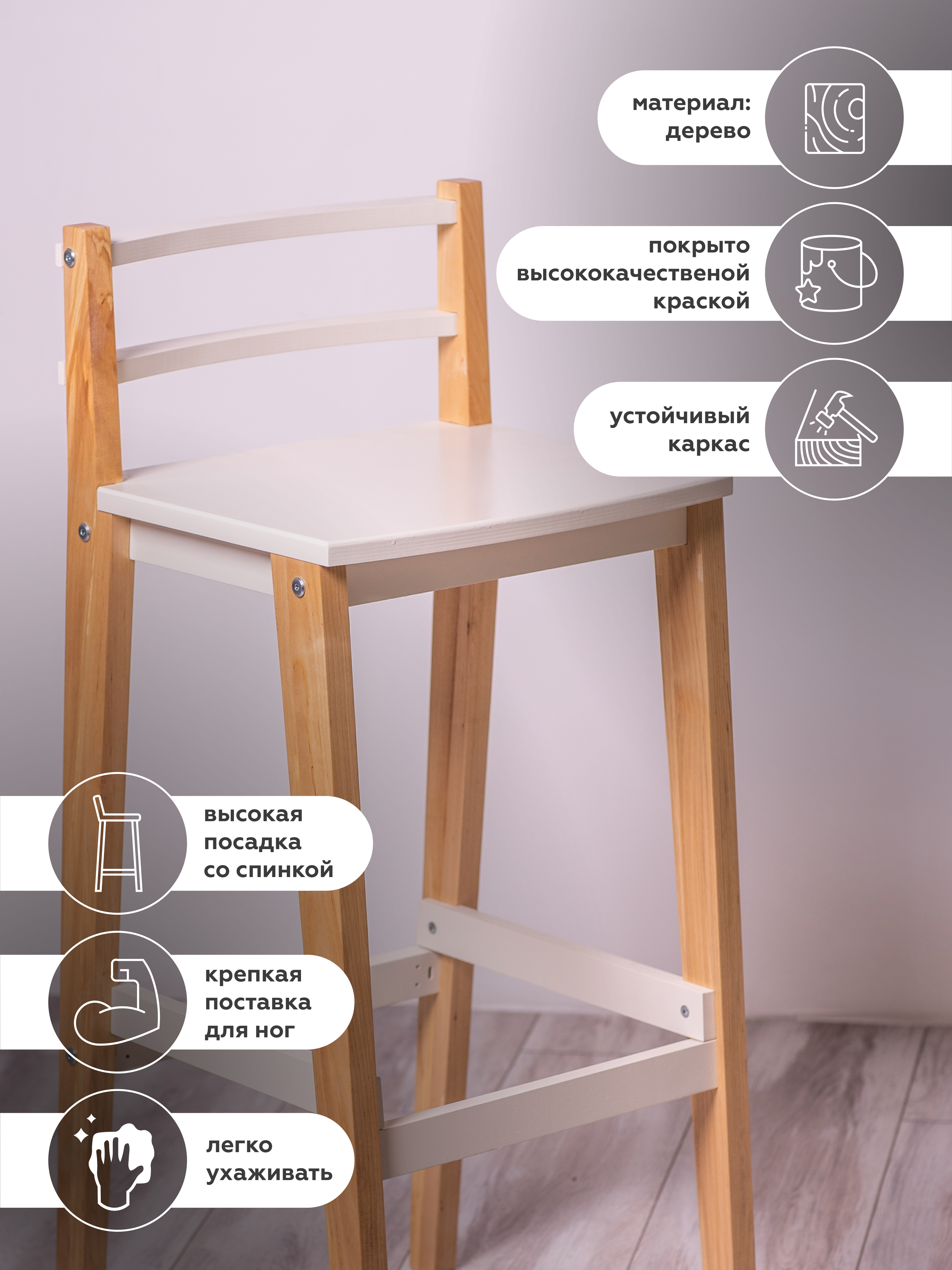 Название моделидля дома, высокий стул табурет, барный табурет деревянный, Boston лакированная слоновая кость