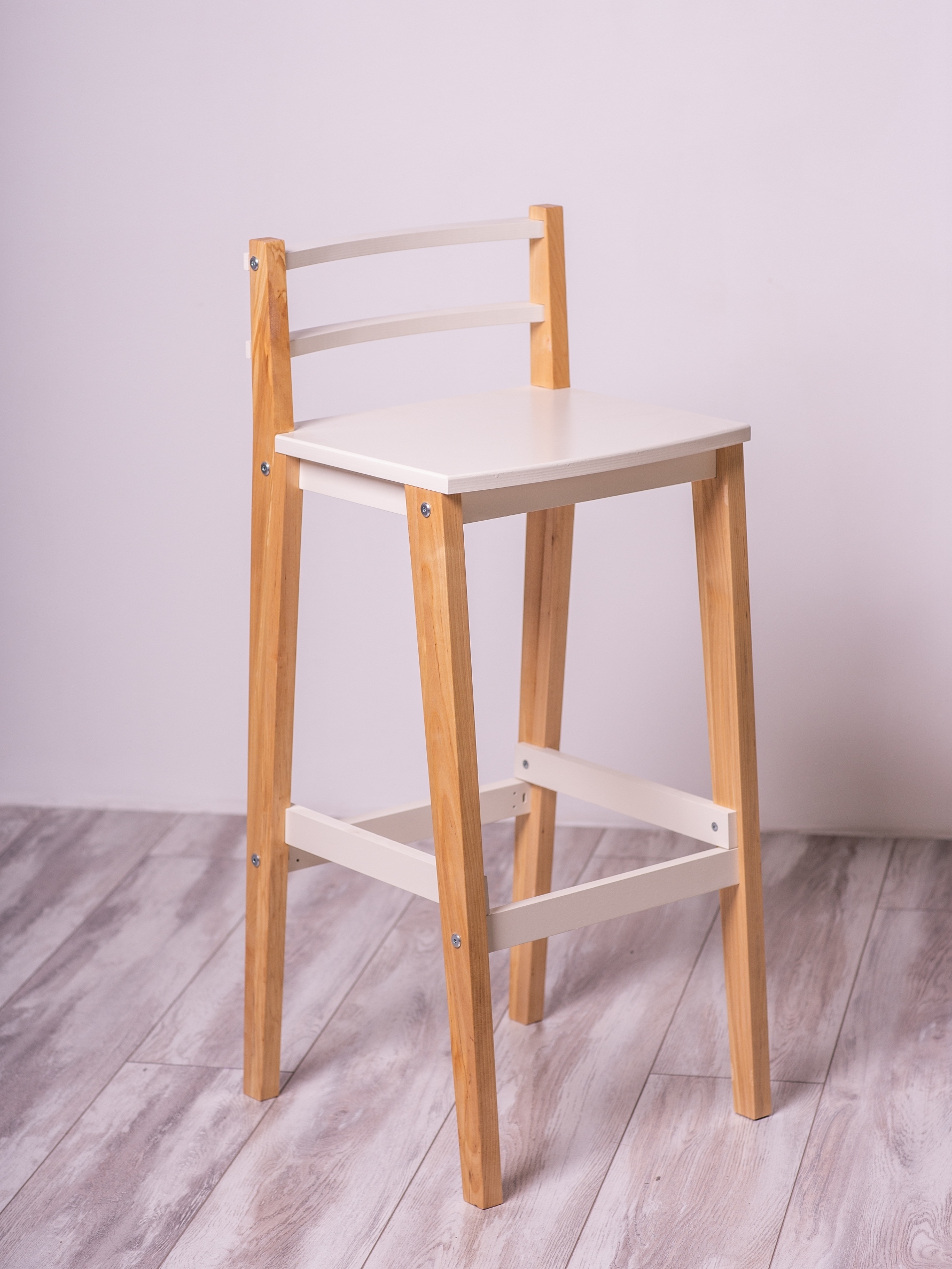 Отличное решение для домашнего бара или современной кухни с высоким столом. Дизайнерский барный стул изготовлен из прочной березовой фанеры высшего сорта, покрыт итальянской краской. Прочный материал выдерживает нагрузку до 120 кг. Сиденье без обивки свед