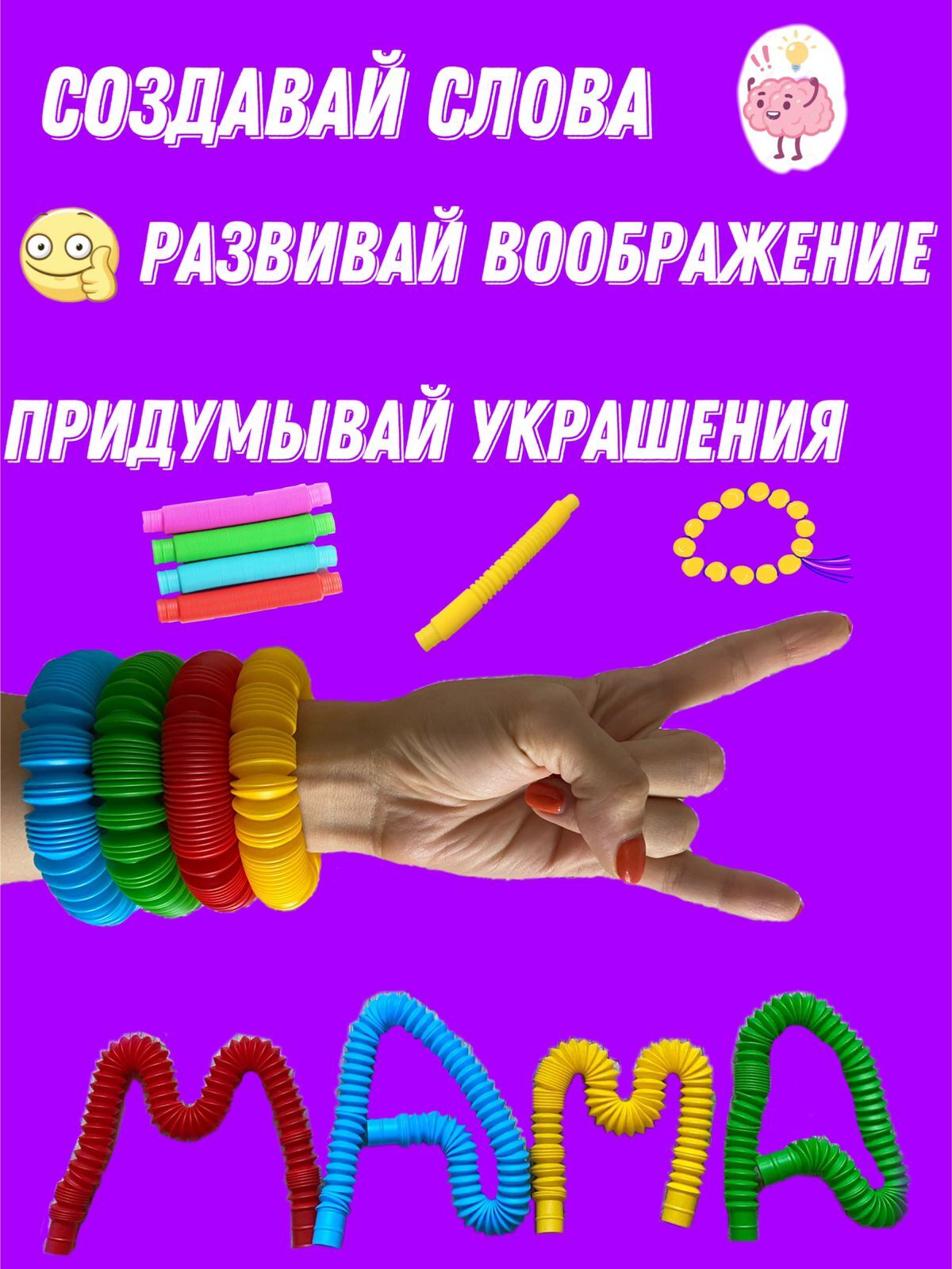 Супер новинка! Тренд 2021! Комплект из 4 трубочек! Растягивается до 50 СМ! Игрушка антистресс POP TUBE, очень простая и веселая игрушка, которая увлечет всю семью в креативный процесс по созданию новых объектов и подарит много положительных эмоций. Хотите