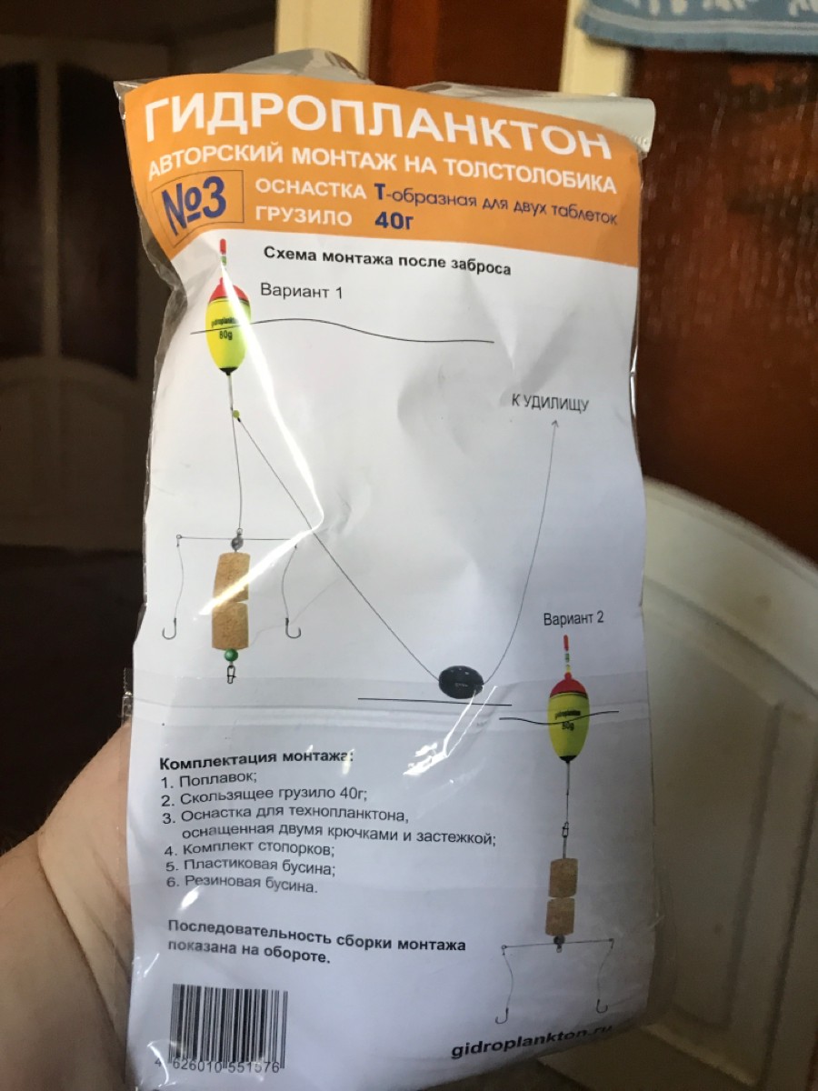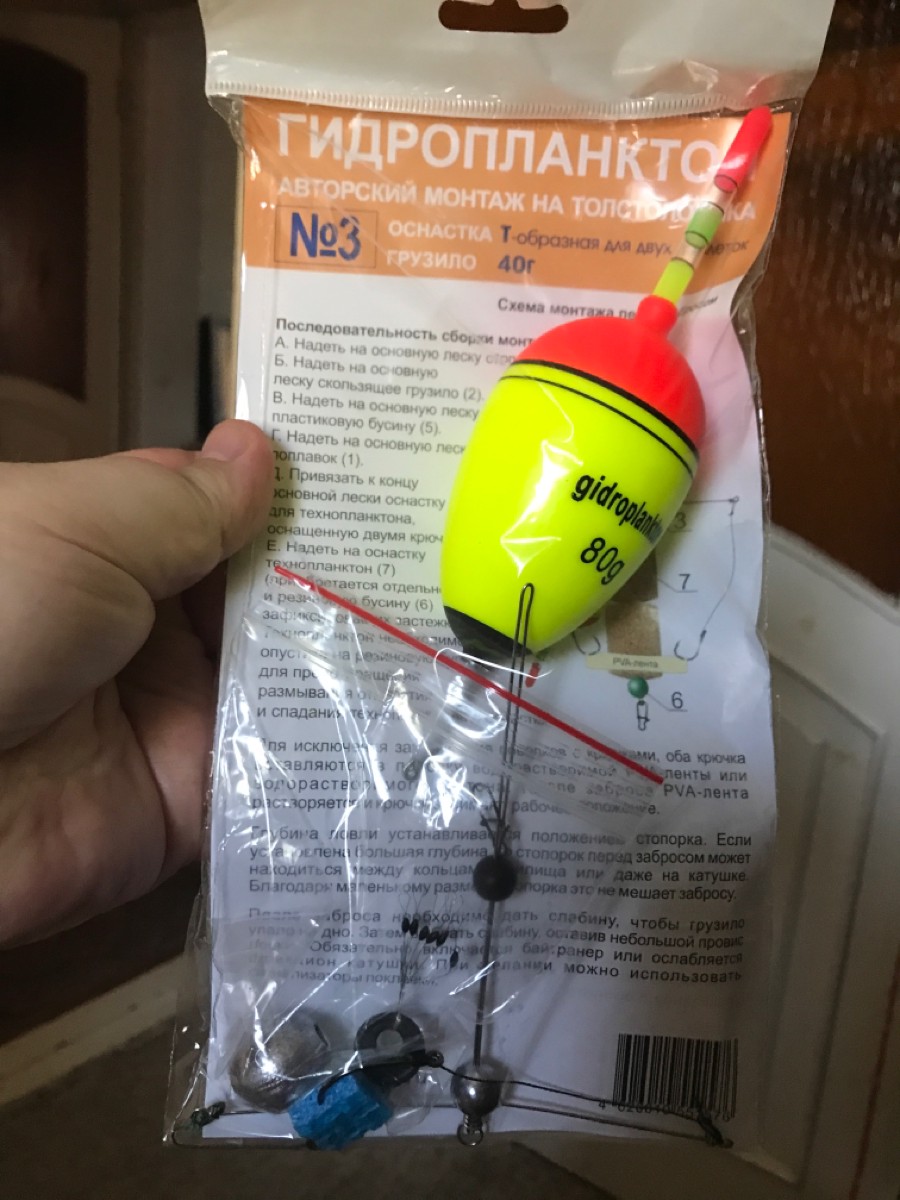 Комплектация:Монтаж №3: Т-образная оснастка для двух таблеток технопланктона, 2 крючка Iseama №15, EVA-поплавок 60г с длинным килем и возможностью установки светлячка, свинцовое грузило 40г. В наборе 2 монтажа.Технопланктон в комплект монтажа не входит и