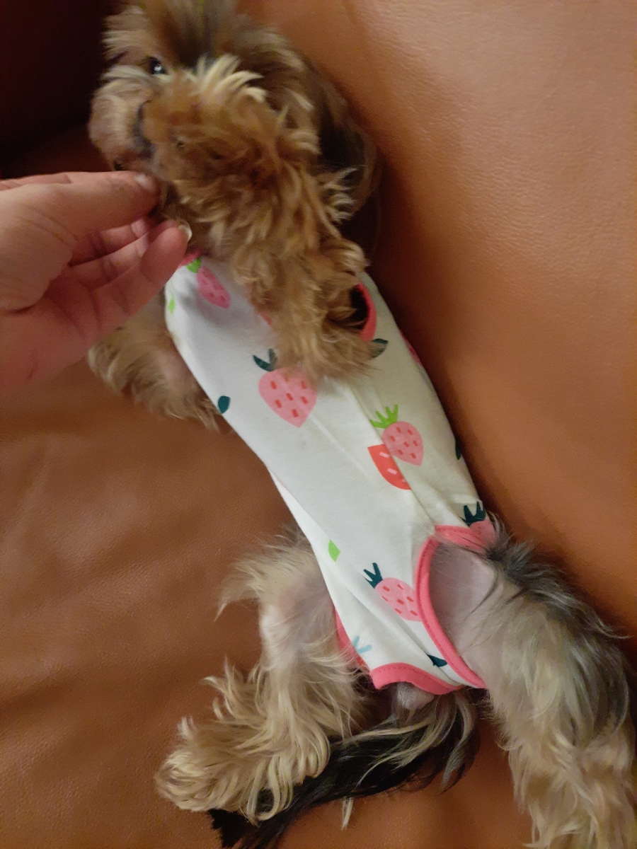 Попона сшита из легкого дышащего влагопоглощающего материала, что даёт высокий комфорт животному и поддерживает быстрое заживление послеоперационных ран.Мягкая и безопасная ткань из натурального хлопка защищает вашего питомца от вторичных повреждений.Рань