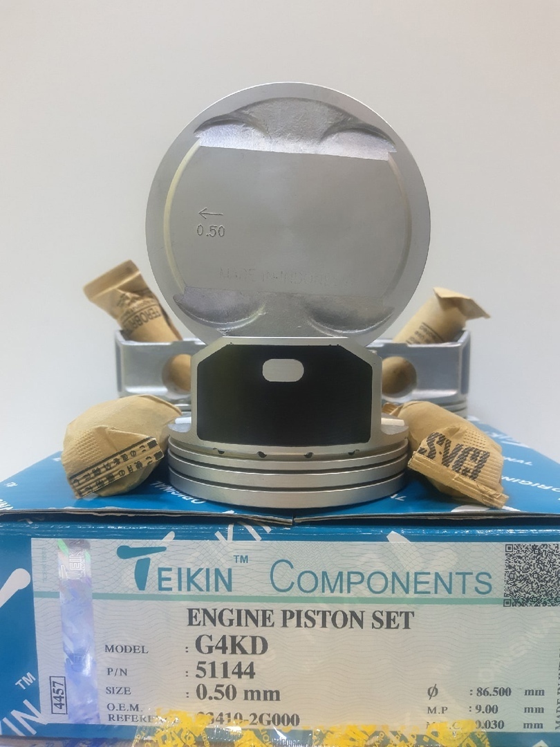 Поршни с кольцами tpr G4KD, ремонт 0.5 86/1.2*1.2*2 П21 производства TEIKIN на крупнейшем в мире заводе в Индонезии.Комплектация:В комплект входят 4 поршня с пальцами + кольца .Цена указана за комплектПрименимость на моторы 2.0л G4KD для:Hyundai ix35 2009