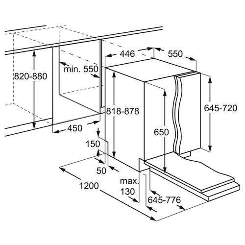 Особенности рабочей камерывнутренняя поверхность из нерж. стали, регулируемая по высоте корзина для посуды