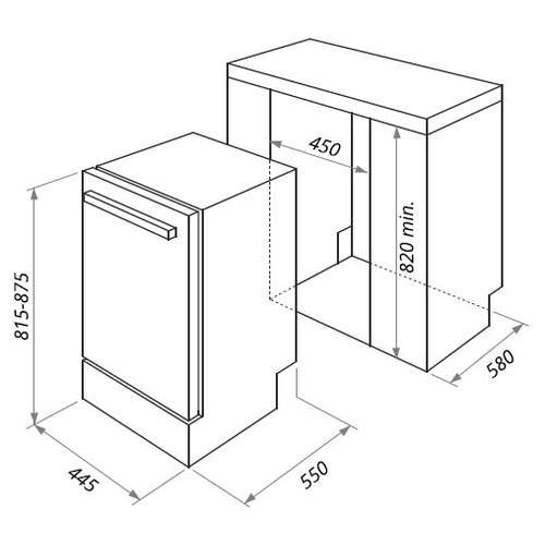 Особенности рабочей камерывнутренняя поверхность из нерж. стали, регулируемая по высоте корзина для посуды