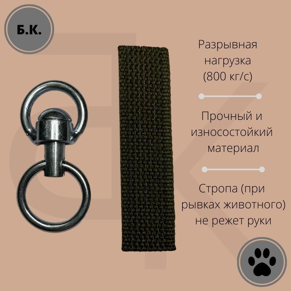 Поводок-сворка для собак капроновый с вертлюгом 50 см х 2 х 25 мм зеленый (до 80 кг х 2) / поводок-сворка капроновый с карабинами / поводок-сворка для прогулок и дрессировок нескольких собак на ближних расстоянияхХорошо подходит для ежедневных прогулок с