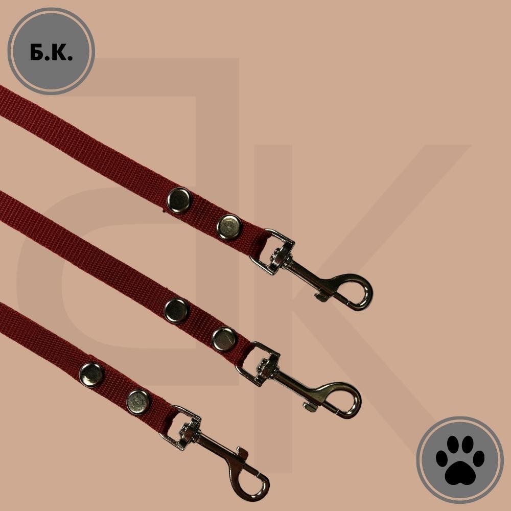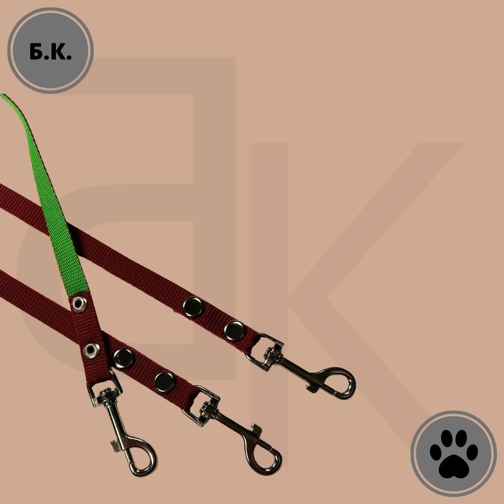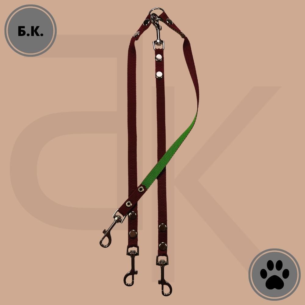 Поводок-сворка для собак нейлоновый тройной 40 см х 3 х 15 мм бордово-салатовый (от 5 кг до 15 кг х 3) / поводок-сворка нейлоновый с карабинами / поводок-сворка для прогулок и дрессировок нескольких собак на ближних расстоянияхХорошо подходит для ежедневн