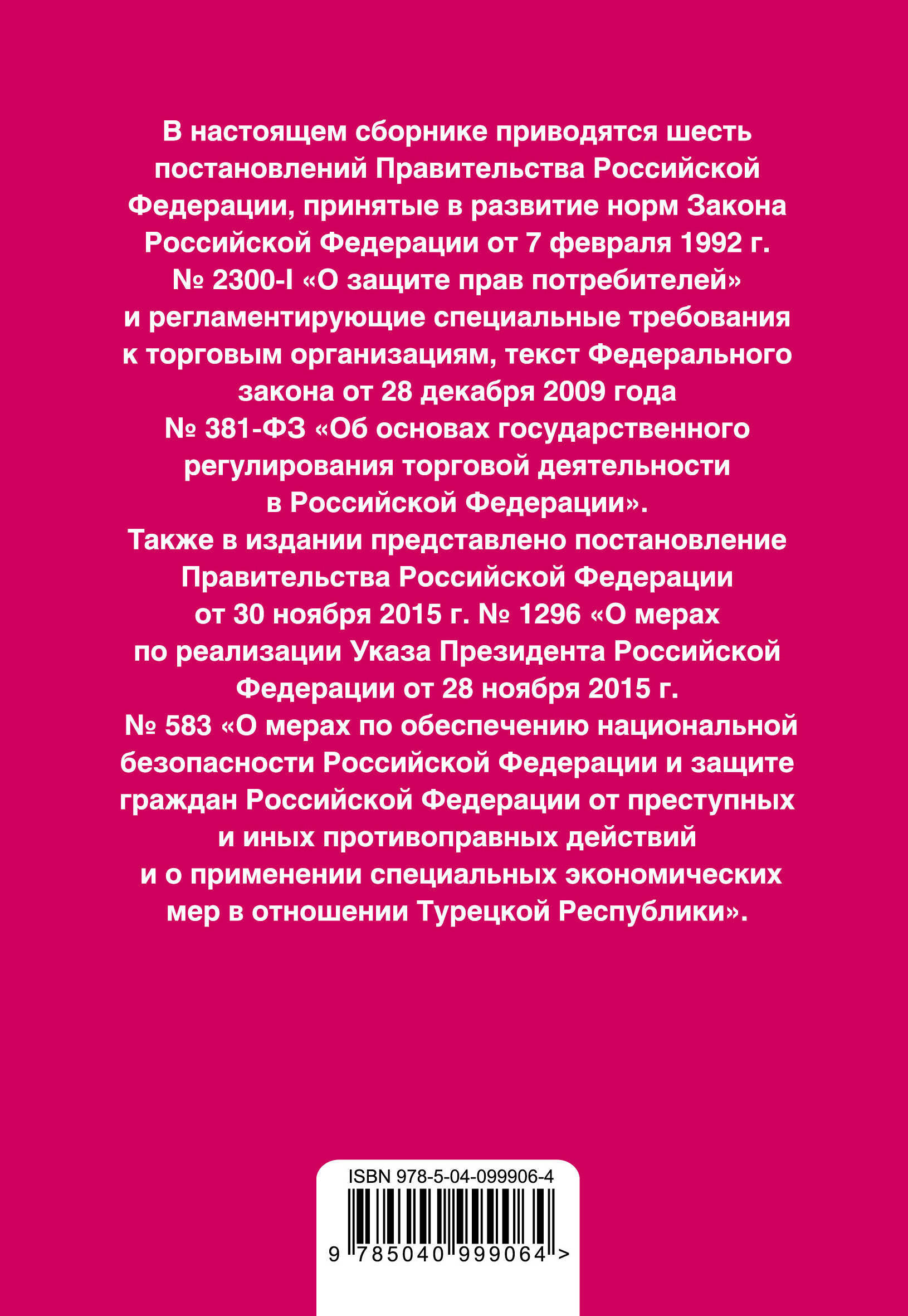 В настоящем сборнике приводится шесть постановлений Правительства Российской Федерации, принятых в развитие норм Закона Российской Федерации от 7 февраля 1992 г. № 2300-I «О защите прав потребителей» и регламентирующих специальные требования к торговым ор