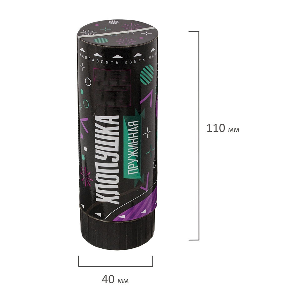 Комплектация:Хлопушка пружинная НАБОР 4 шт., 11 см, фольга, серпантин конфетти, ассорти (2 штуки)Описание:Пружинная хлопушка предназначена для создания отличного настроения и атмосферы настоящего веселья на любом празднике - новогодней вечеринке, торжес