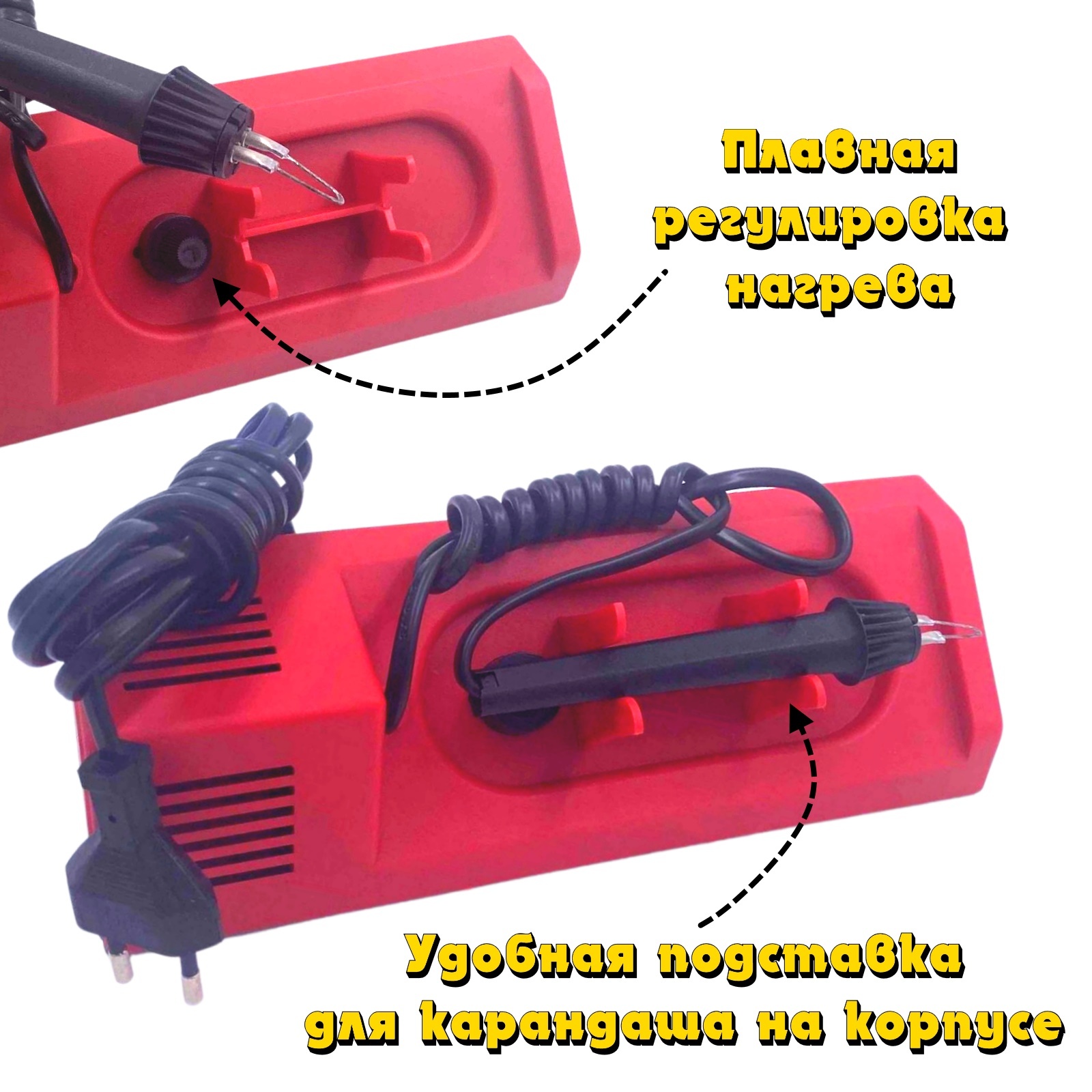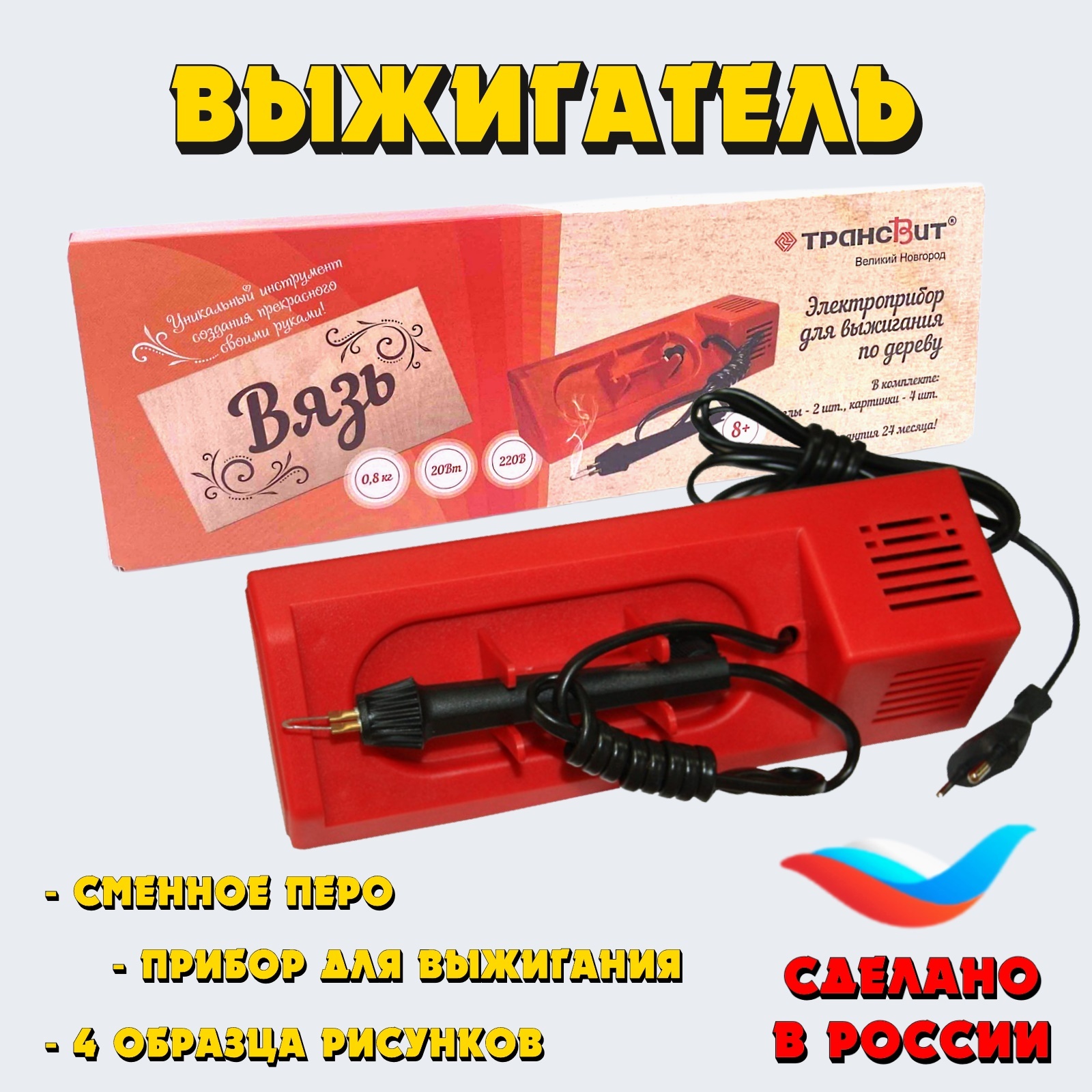 Выжигательный аппарат "Вязь" 220В, 20Вт, моментальный нагрев нити 2-3 секунды.В комплект входит:прибор для выжигания с возможностью крепления карандаша на корпусе; иглы для выжигания по дереву 2шт (на карандаше и запасная); образцы рисунков для выжигания