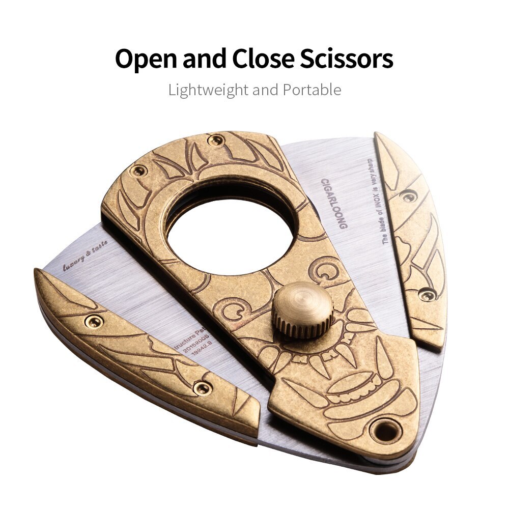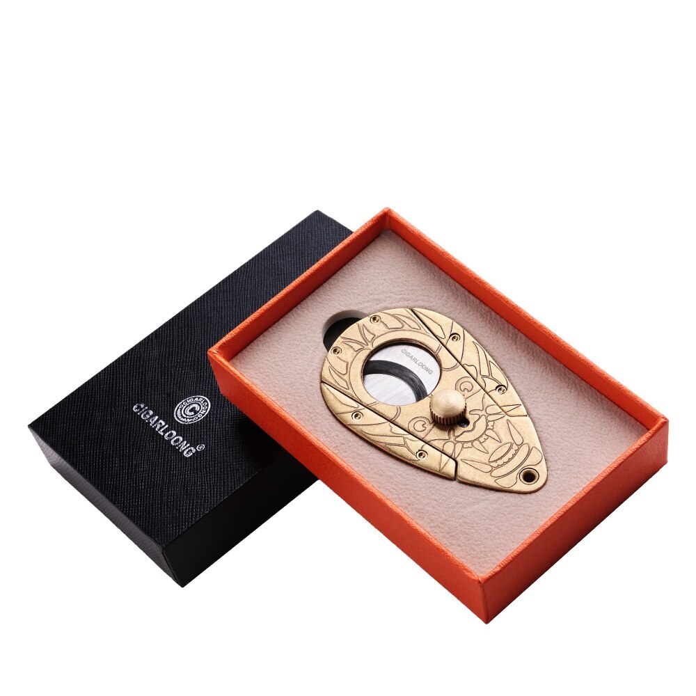 Прибытие из нержавеющей стали Сигарный нож Ретро узор Простой дизайн Подарочная коробка золотой