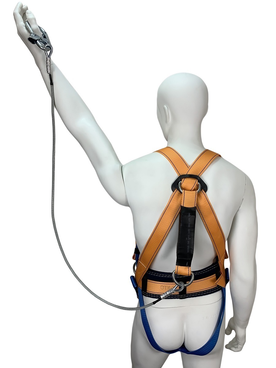 Страховочная система с наплечными и набедренными лямками со стропом из металлического троса в ПВХ оболочке с амортизатором. Масса, г: 2000Рост, см до 200Обхват пояса, см 74-144Обхват ног, см до 100Размер 44-52