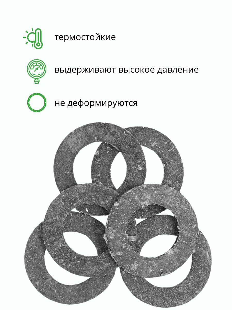 Комплектация:Прокладка паронитовая - 6 шт.Описание:предназначена для герметизации соединений в системах холодного и горячего водоснабжения, теплоснабжения, паровых и газовых системах и др.