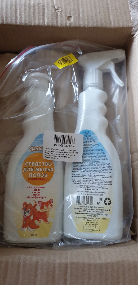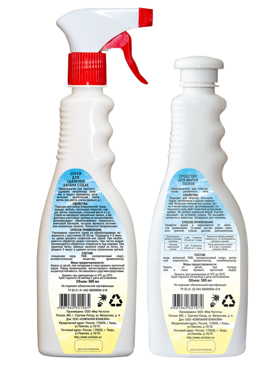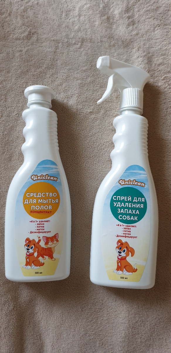 Комплектация:Спрей для удаления запаха собак Uniclean 500 мл - 1 штСредство для мытья полов Uniclean концентрат 500 мл - 1 штОписание:Промонабор 1. Спрей для удаления запаха собак Uniclean 500 млПредназначен для быстрого удаления неприятных запахов и труд