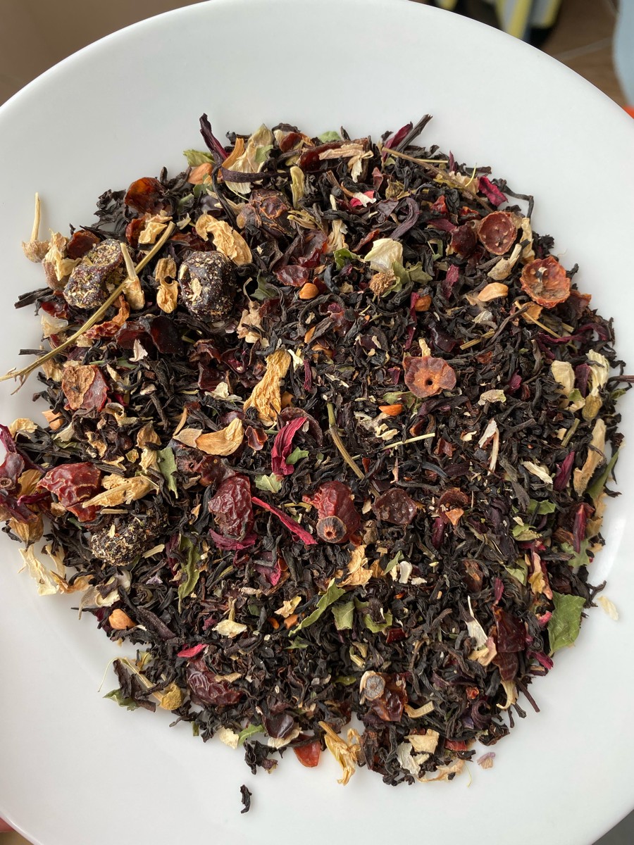 Условия хранения:Хранить при температуре от 5 до 25 градусов С. и относительной влажности воздуха не более 70%Состав:черный цейлонский чай (F.B.O.P.) Флауэри Брокен Орандж Пеко, плоды шиповника, клюквенные цукаты, цветки розы суданской (гибискус), лепестк