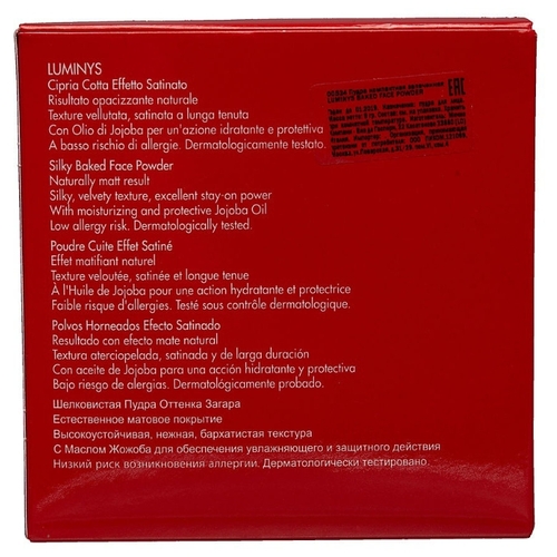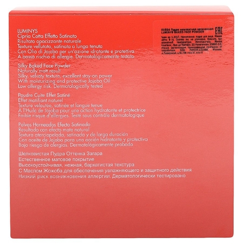 Составtalc, nylon-12, paraffinum liquidum (mineral oil), octyldodecyl stearoyl stearate, dimethicone, polysorbate 20, simmondsia chinensis (jojoba) seed oil, lauroyl lisine, tocopheryl acetate, magnesium aluminum silicate, ethylhexyl, methoxycinnamate, phenoxye