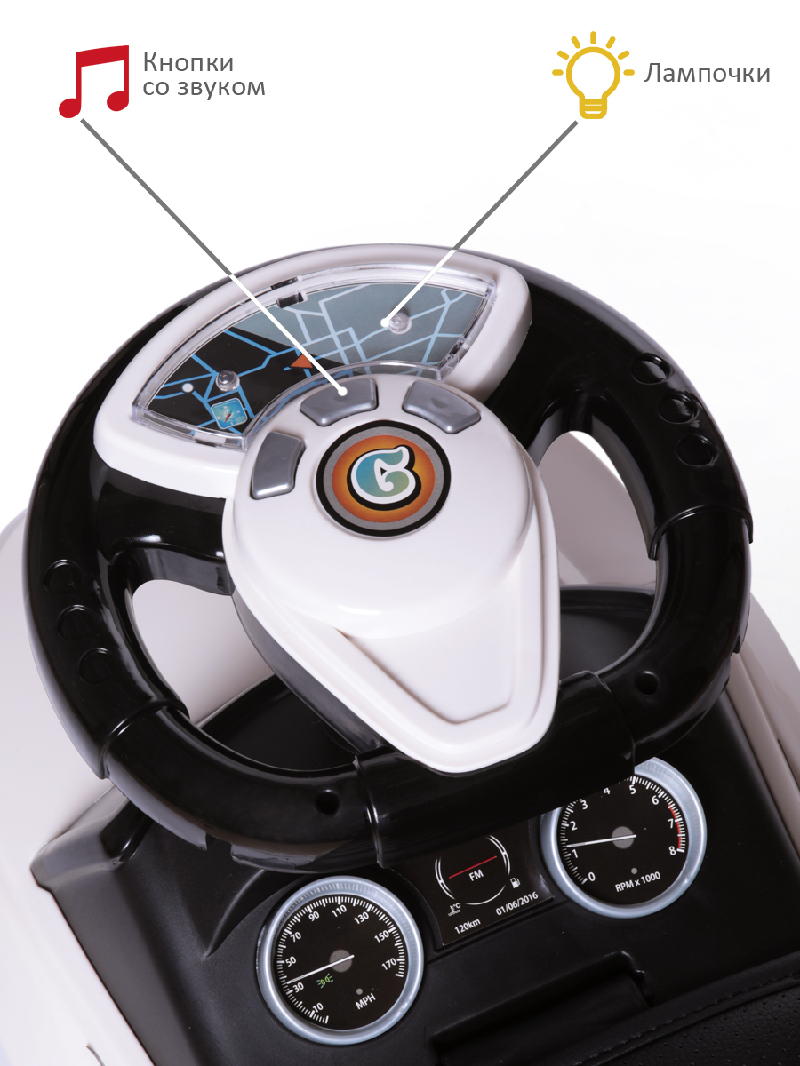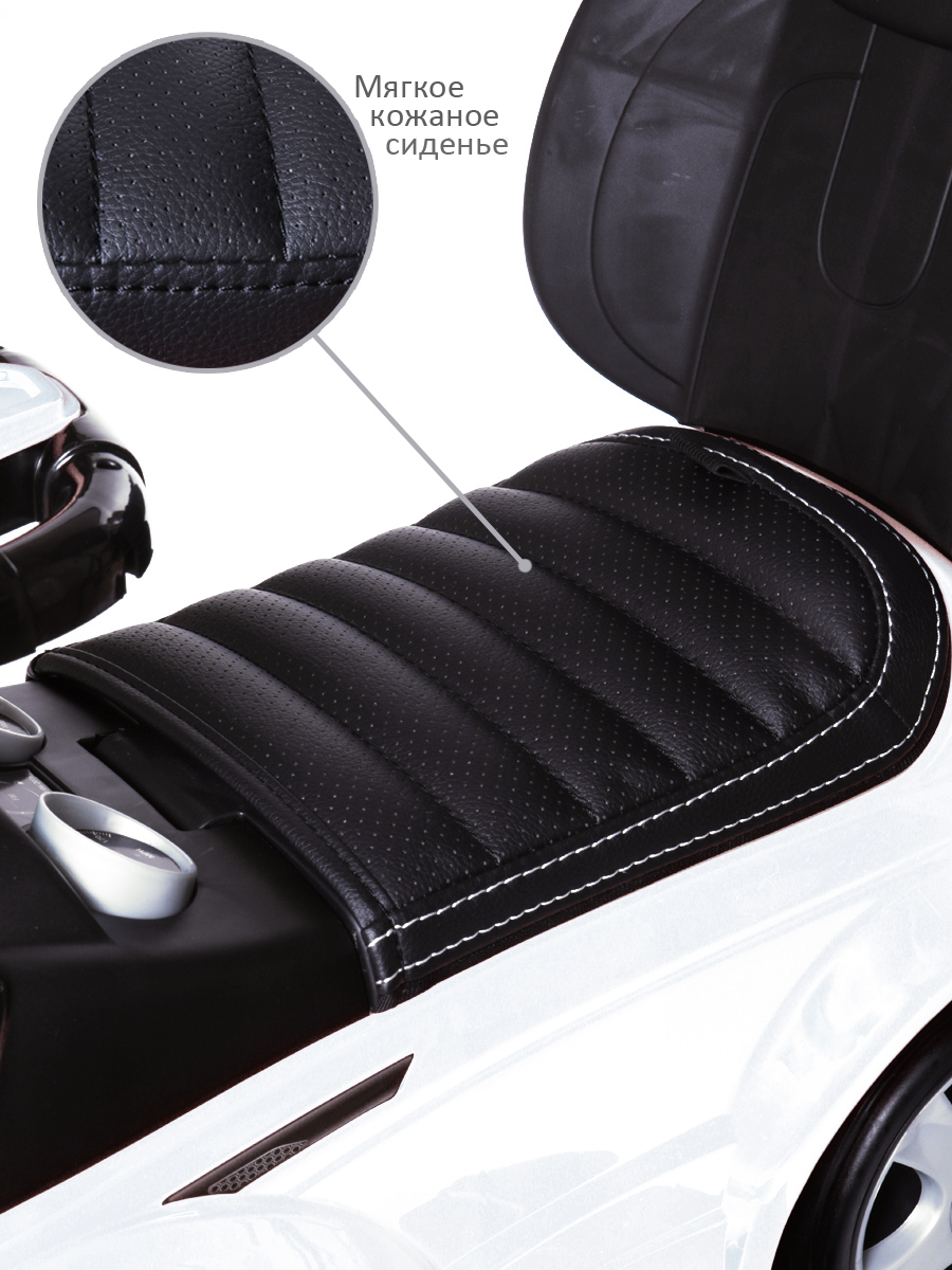 Этот спорткар с кожаным сиденьем уже ждет юных автолюбителей и готов покорять улицы города. Износостойкие резиновые колеса обеспечивают дополнительную амортизацию при езде. Поворотный руль оснащен световыми и звуковыми эффектами (батарейки в комплект не в
