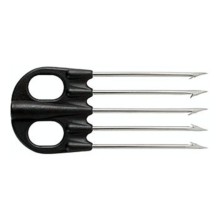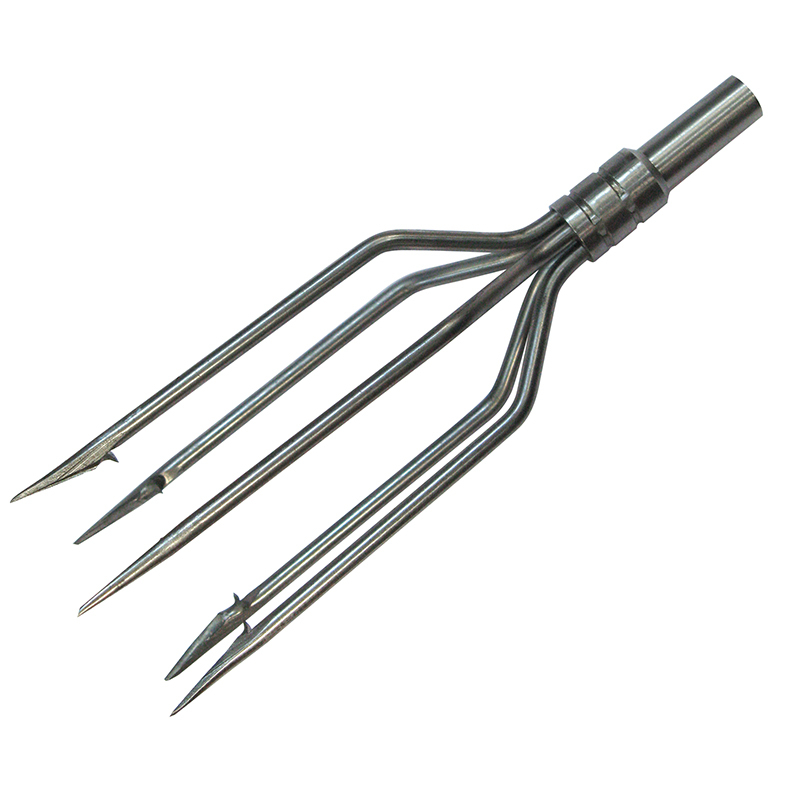 Пятизубец из нержавеющей стали без покрытия, металлическое основание конической заточки, резьба 7 мм. Расположение зубцов пятиугольное. Подходит для гарпунов импортного производства с резьбой М7. Общая длина 13 см.