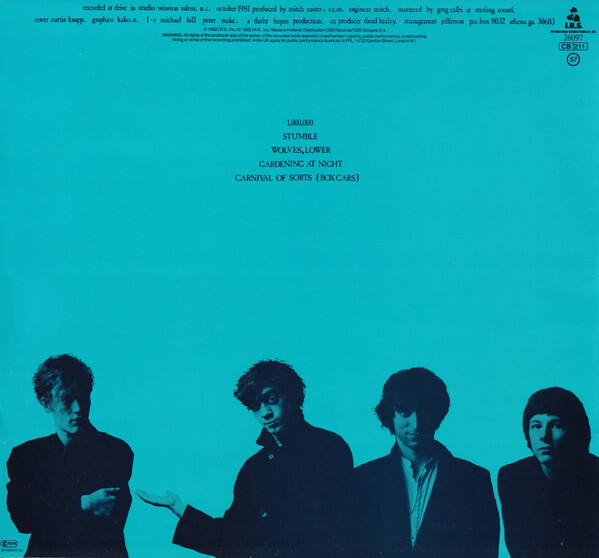 LP, Used, Лейбл: I.R.S. Records, Каталожный номер: ILP 26097 Страна: ЕвропаГод: 1982Пластинка: VG+Обложка: VG+ Содержание: A1 Wolves, Lower 4:08A2 Gardening At Night 4:33A3 Carnival Of Sorts (Box Cars) 3:51B1 1,000,000 3:04B2 Stumble 5:39 Матрица: B
