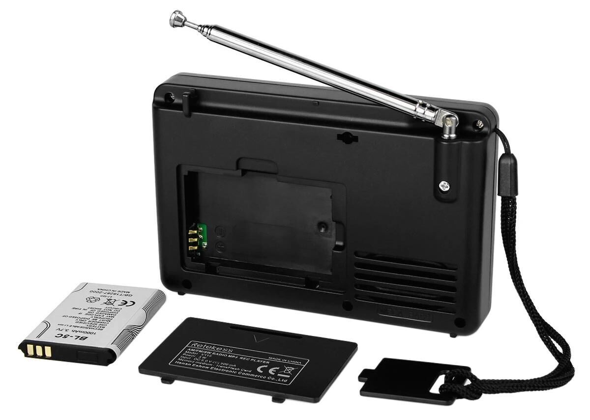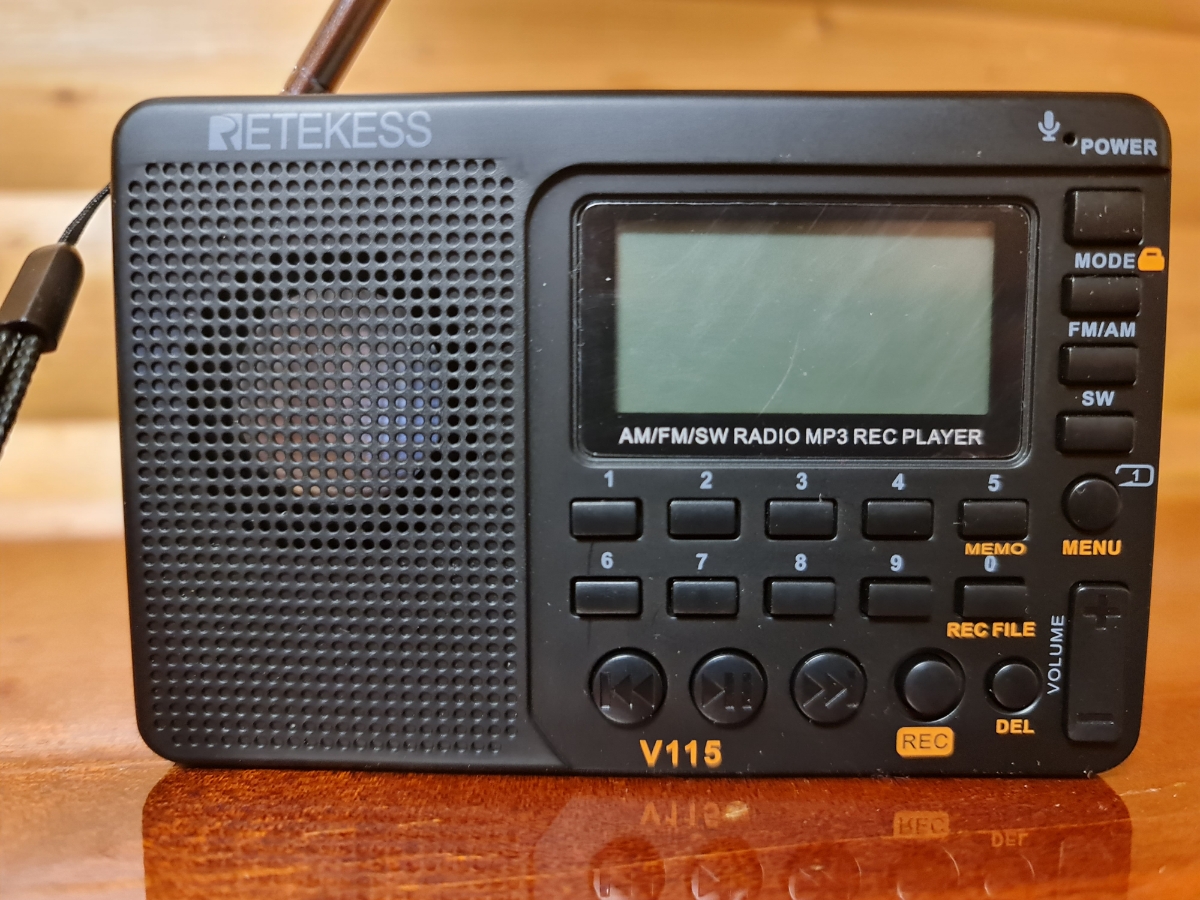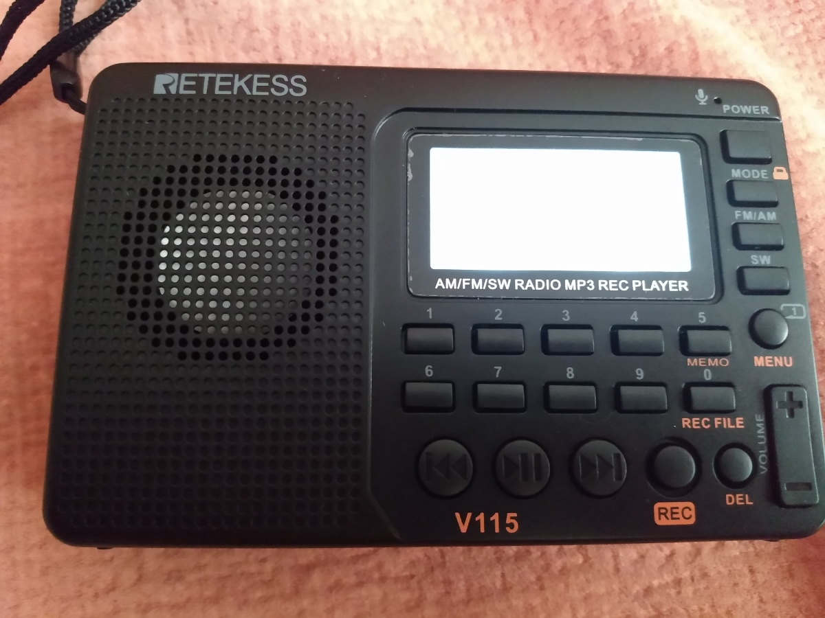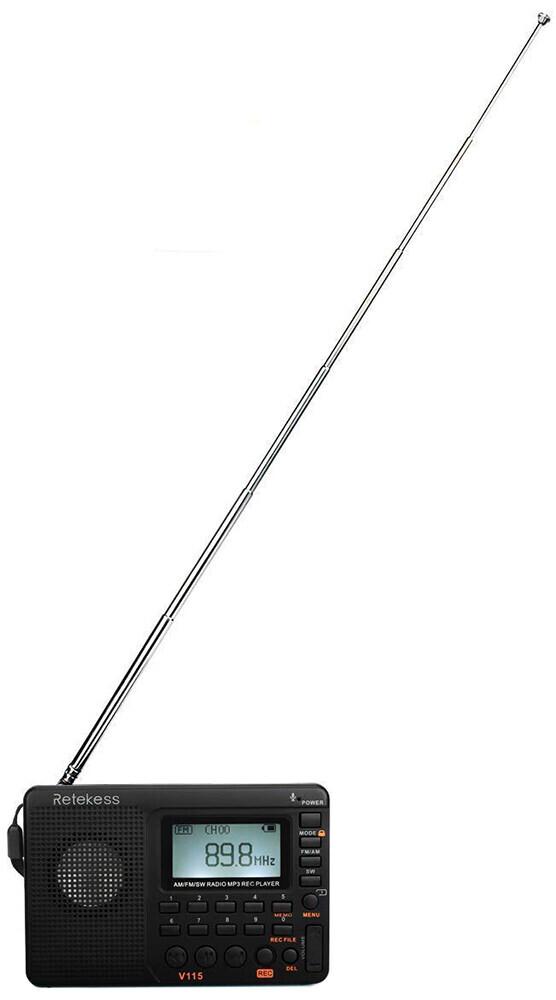 Портативный цифровой радиоприемник с диктофоном Retekess V115 весом 160 г и размером 20*120*80 мм предназначен для приема в диапазонах AM – 520-1710 кГц, SW – 4.75-21.85 МГц и FM – 87.5-108 МГц. Аппарат может воспроизводить встроенным плеером MP3/WMA ф