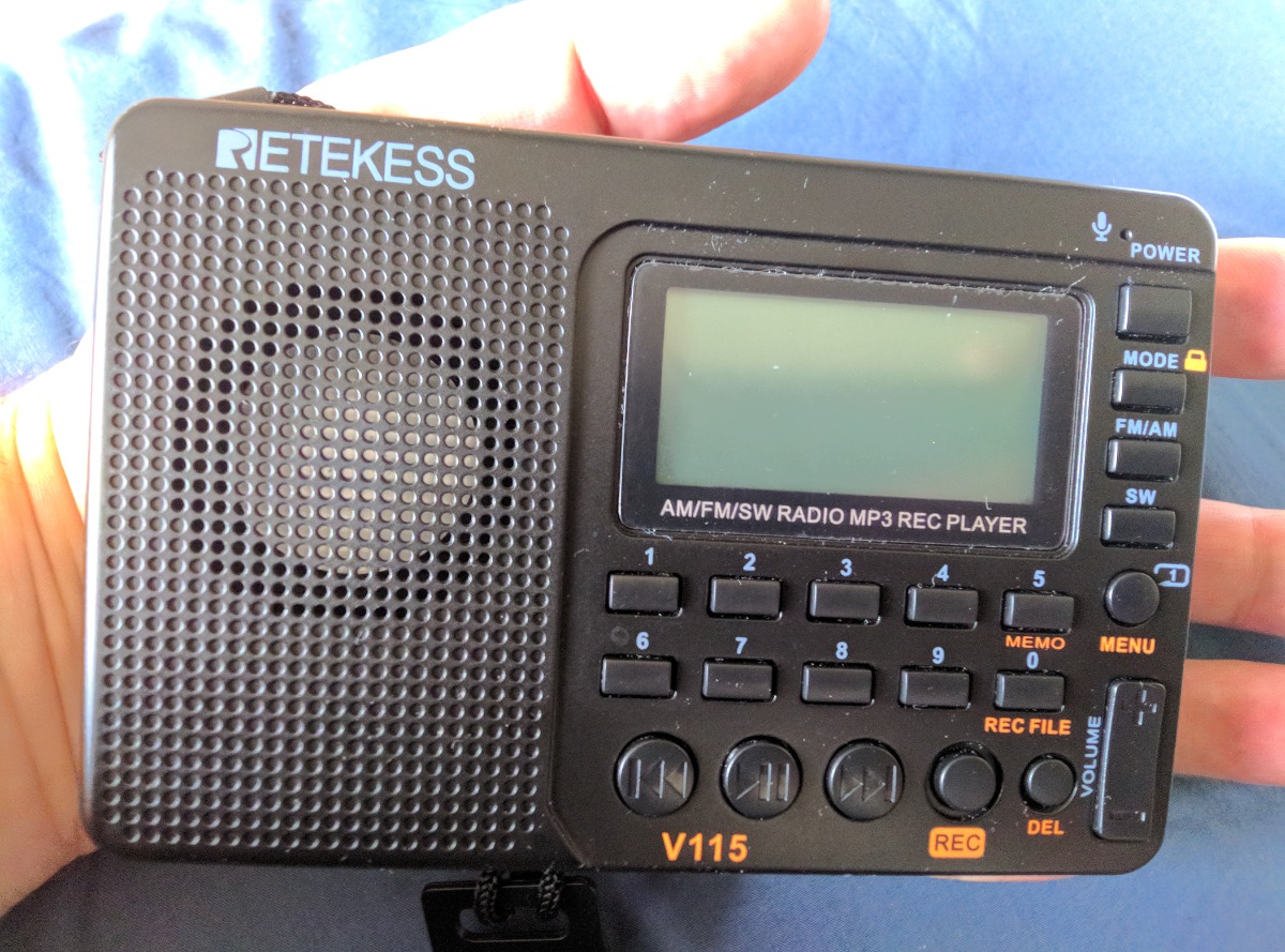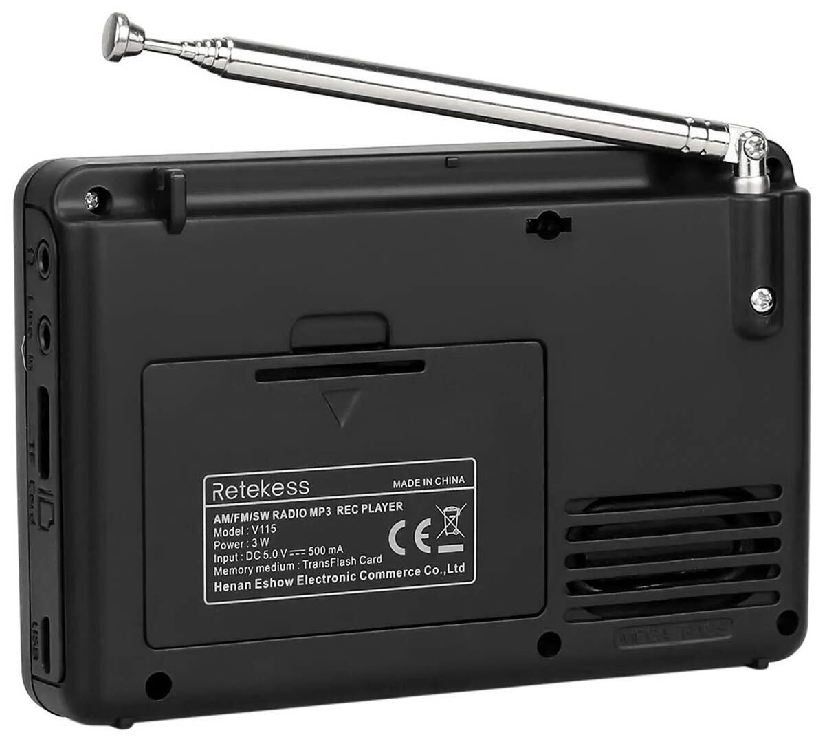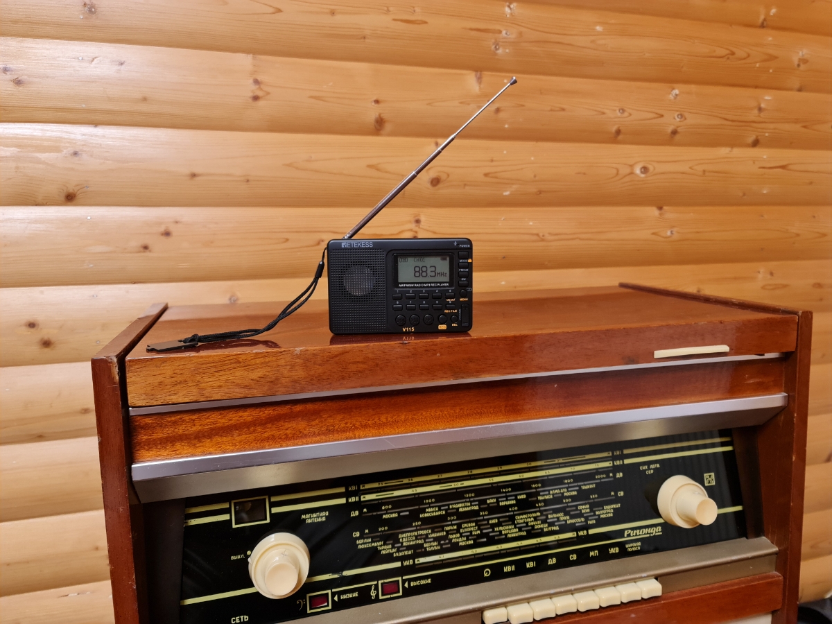 Портативный цифровой радиоприемник с диктофоном Retekess V115 весом 160 г и размером 20*120*80 мм предназначен для приема в диапазонах AM – 520-1710 кГц, SW – 4.75-21.85 МГц и FM – 87.5-108 МГц. Аппарат может воспроизводить встроенным плеером MP3/WMA ф