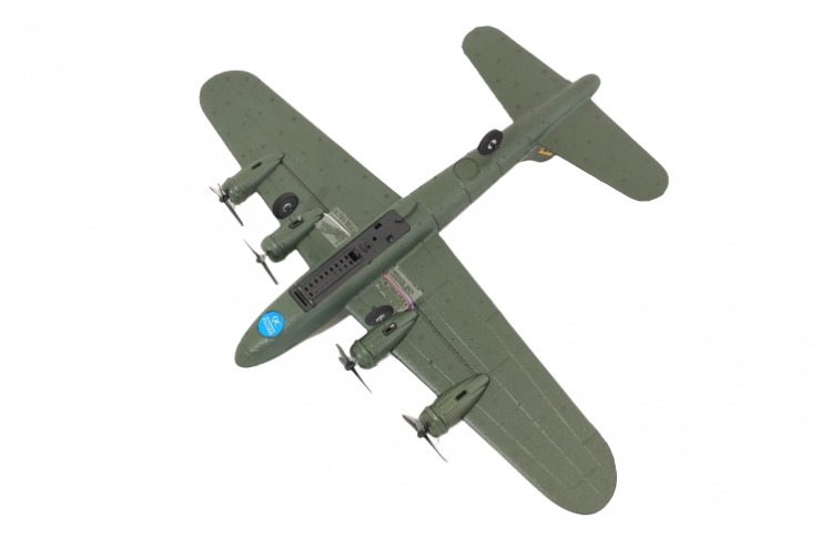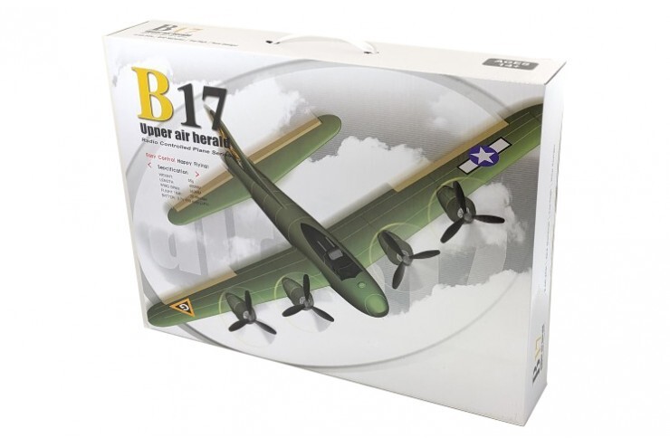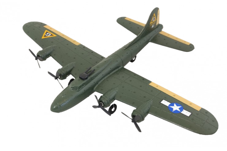 Этот радиоуправляемый двухканальный самолет выпускается в различных вариантах окраски, оснащен двумя мощными электродвигателями и выглядит как настоящий бомбардировщик В-17. Сзади пилотской кабины сымитирован даже сдвоенный пулемет! Два тянущих пропеллер