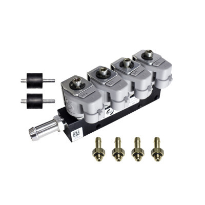 Рампа инжекторная (пропан, метан) Rail IG1, 4 цилиндра (пропан, метан).Для дозировки подачи топлива в цилиндры двигателя. Ремкомплект рампы взаимозаменяем с рампами типа Valtek.Инжектор рампы (штуцер, жиклёр) Rail IG1 не взаимозаменяем с инжектором рампы