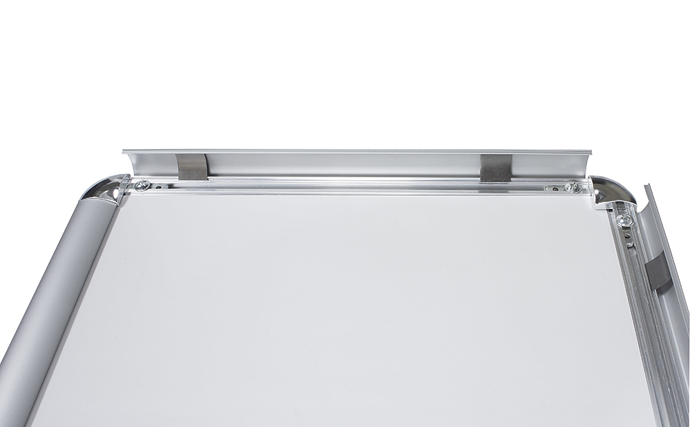 Ориентация-Любая; Вставка изображения- Фронтально, раскрытый вид; Толщина бумаги для вставки-до 2 мм; Материал изготовленияа- люминий, анодированный; Материал и свойство защитного вкладыша- пластиковое стекло (ПЭТ), 0,4 мм антиблик Материал задней стенки-
