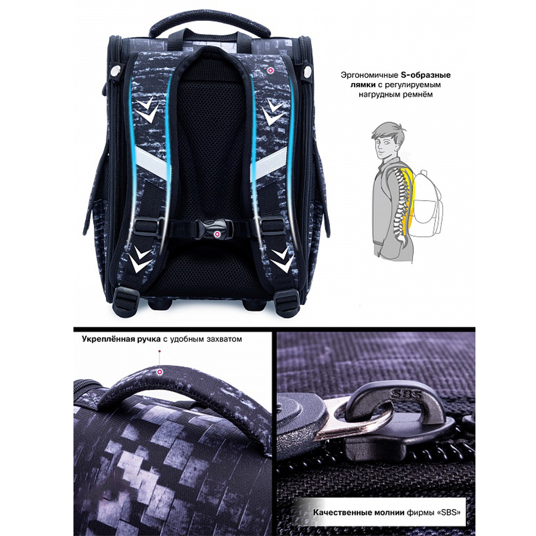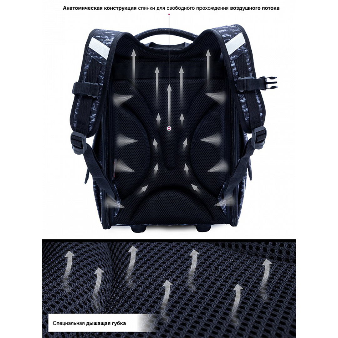 Особенности конструкции сумкиОртопедическая спинка, Светоотражающие вставки, Анатомические лямки, Воздухопроницаемая спинка, Пластиковые ножки, Органайзер для принадлежностей, Вентилируемые лямки, Влагонепроницаемый, Для первоклассника, Жесткое дно, Разделитель в главном отделении, Широкие лямки, Регулируемый грудной ремень, Грудная стяжка, Эргономичная ручка для переноски