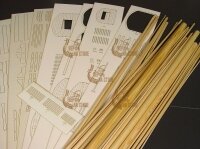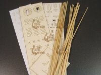 Комплект круглых деревянных заготовок для изготовления рангоута (мачты, реи) бумажной модели Schwarzer Rabe польской фирмы Shipyard. Набор включает в себя 16 заготовок диаметром от 2,5 до 6,5 мм.