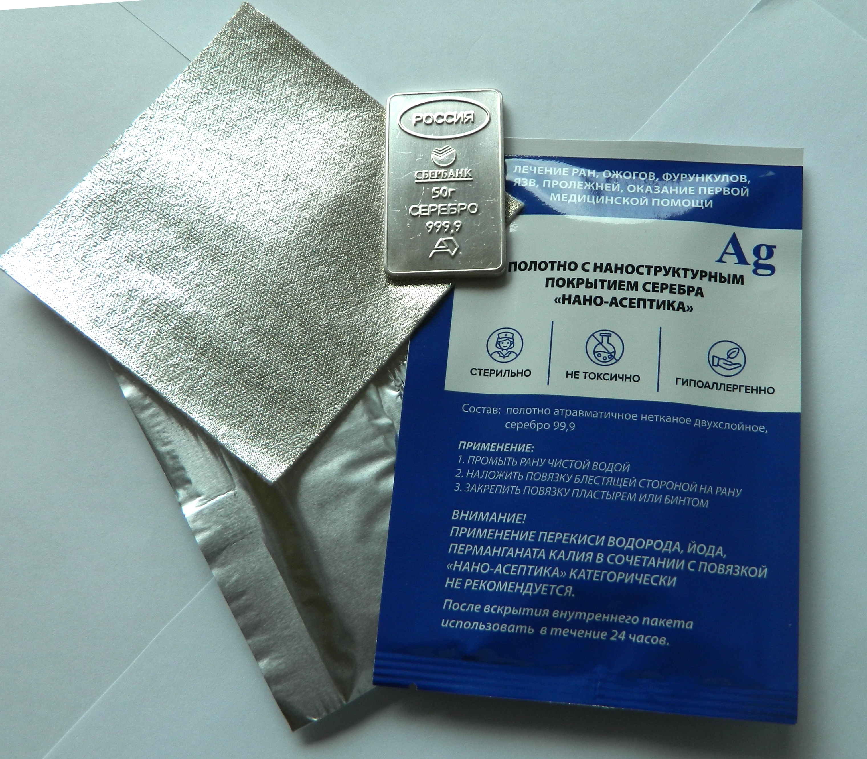 Ранозаживляющая повязка с серебром для лечения и предотвращения инфицирования ран ожогов и пролежней 5х10 см. Комплект 4 штуки.Стерильно.Состав: Полотно атравматическое, антимикробное нетканое двухслойное ; серебро 99,9Регистрационное удостоверение № ФСР