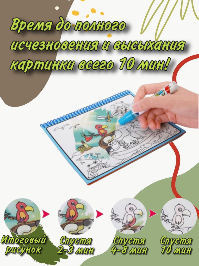 Многоразовые аквараскраски созданы специально для самых маленьких художников, которые только знакомятся с цветами, но ещё не достаточно большие, чтобы рисовать карандашами. До начала использования необходимо налить воду в маркер, который идёт в комплекте