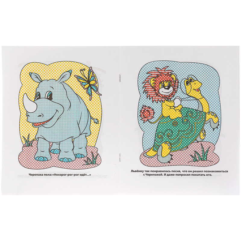 В водной раскраске "Львенок и Черепаха" с помощью воды можно создавать настоящие шедевры, которые не только развлекут ребенка, но и будут способствовать его гармоничному развитию, воображению и мелкой моторики рук. Так же в раскраске представлена история