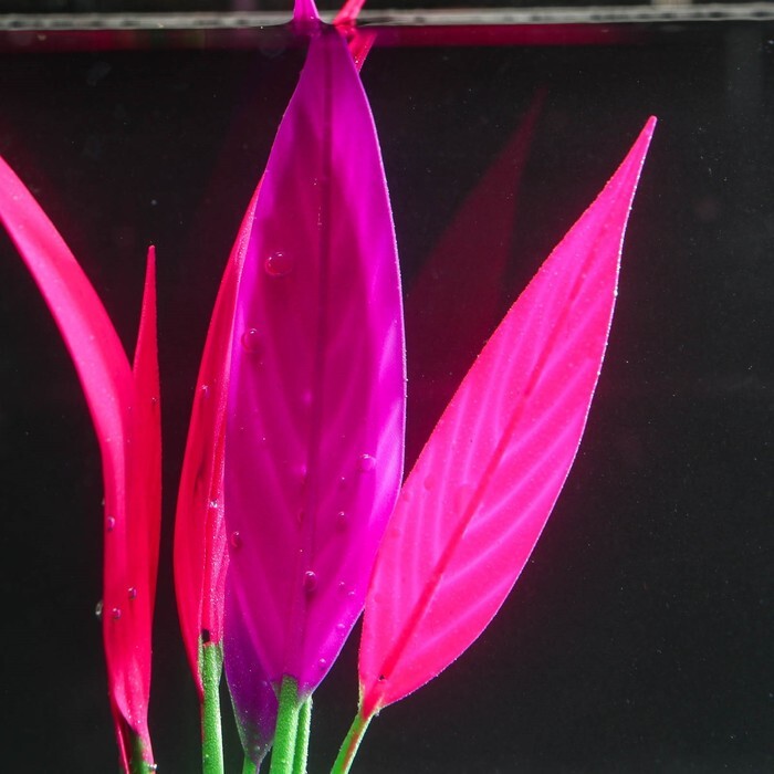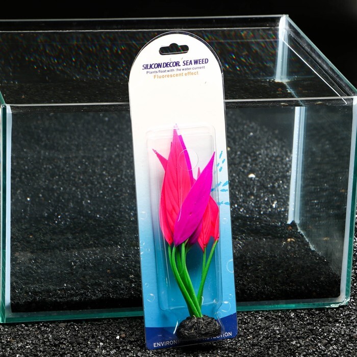 Растение силиконовое аквариумное, светящееся в темноте, 12 х 20 см, розово-фиолетовое.