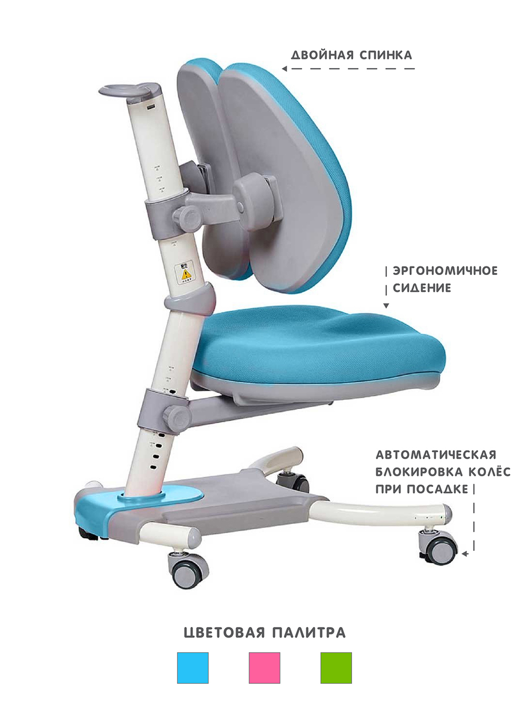 Эргономичное детское кресло RIFFORMA-32 с двойной спинкой и анатомическим сиденьем отличается достойными ортопедическими свойствами. Усиленная поддержка спины, многоуровневая регулировка высоты соответственно росту ребенка, простая и надежная конструкция