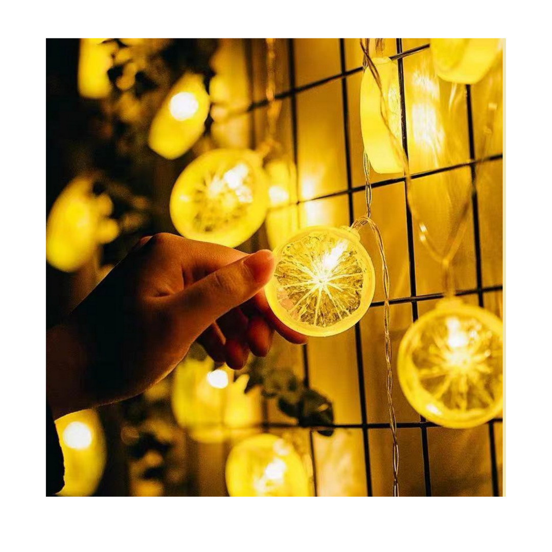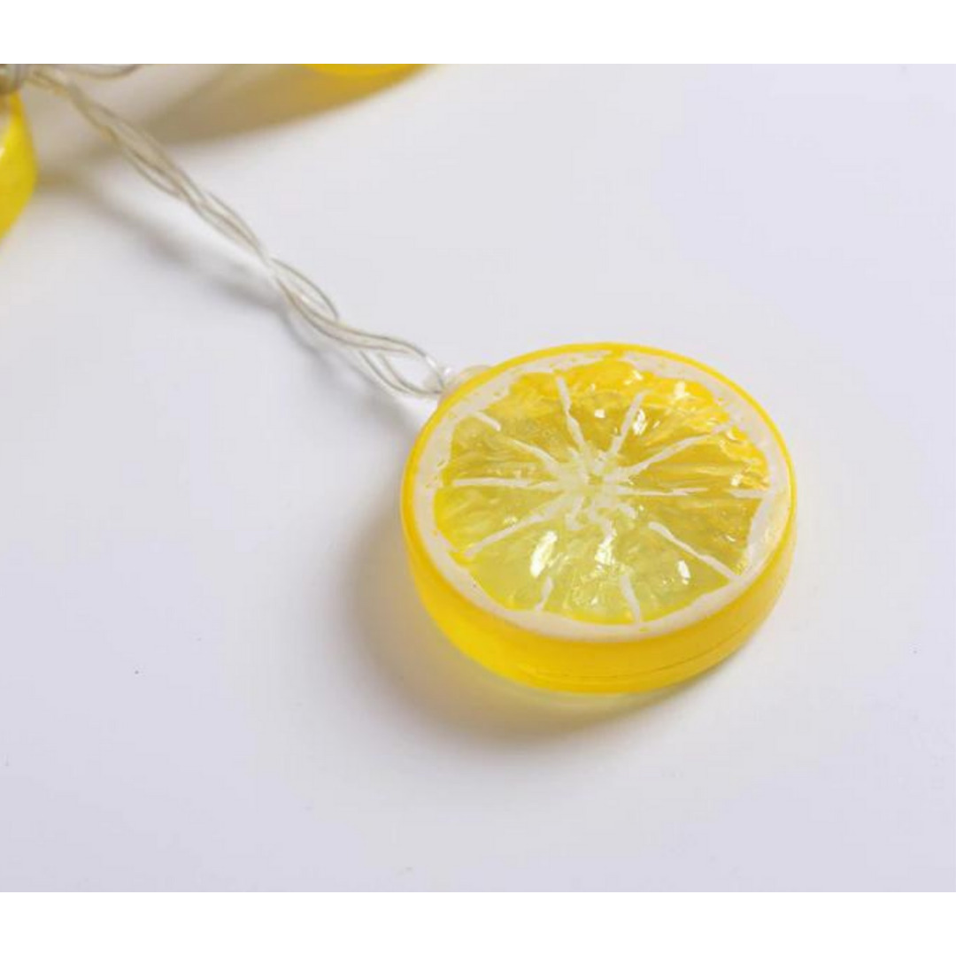 Гирлянда интерьерная светодиодная, LED в форме лимонов, лайм - красивое световое украшение для дома на праздники совместно с воздушными шарами создаст неповторимую атмосферу. Состоит из 20 прозрачных плафонов в виде прозрачных долек лимона (лайма), подсве