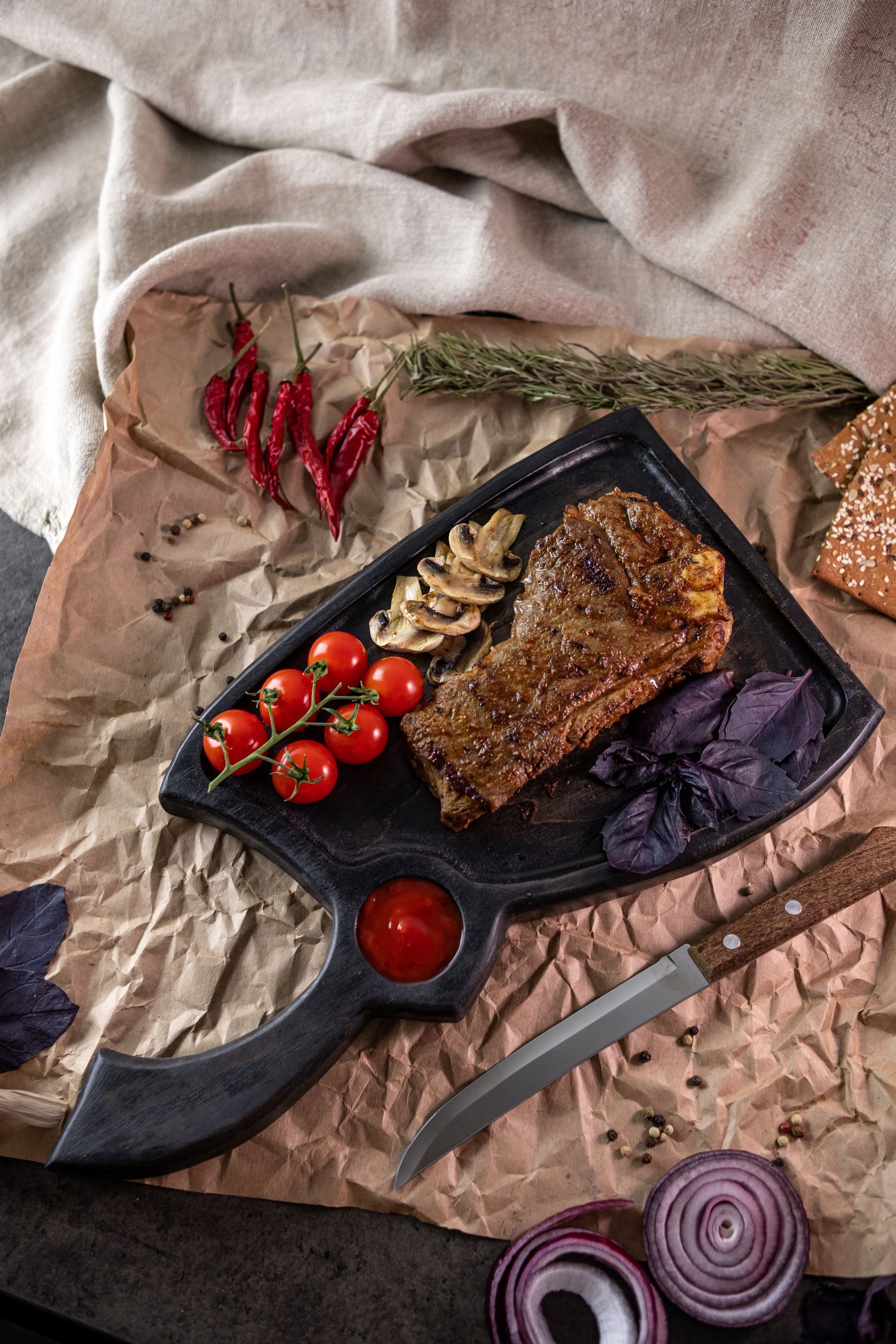 Комплектация:Разделочная доска, памятка, упаковочная коробкаОписание:Доска для подачи "Черный Рог" создана в недрах нашей мастерской специально для любителей стейков и мясных блюд. Изделие выполнено из ценных пород древесины - массива ясеня и обработано с