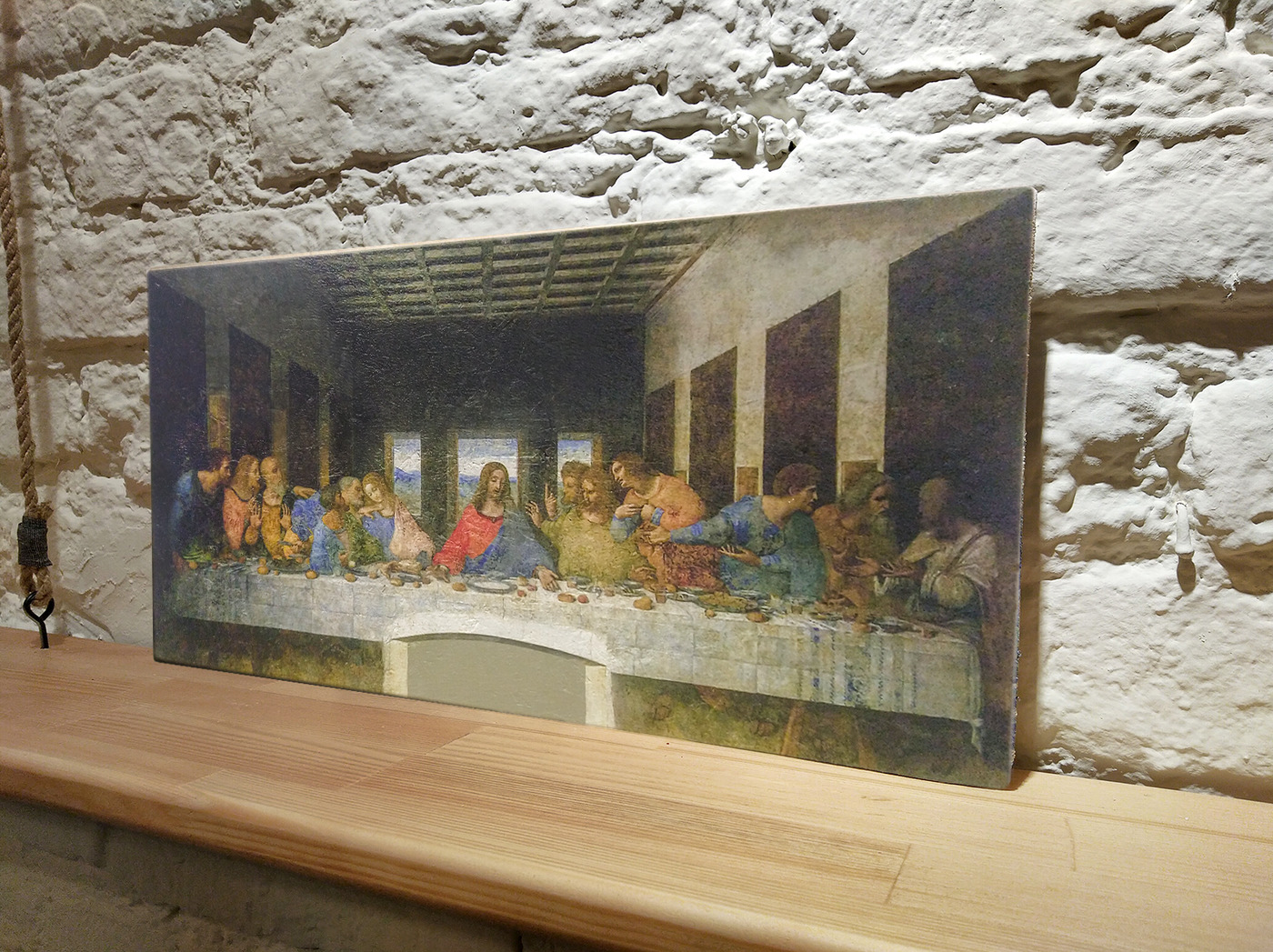 Комплектация:Изделие и подвесОписание:Представляем Вам репродукцию фрески Леонардо да Винчи «Тайная вечеря», выполненную в технике фрески на доске.Фрески на доске ArtStore – уникальный продукт, разработанный и созданный нашей компанией с применением натур
