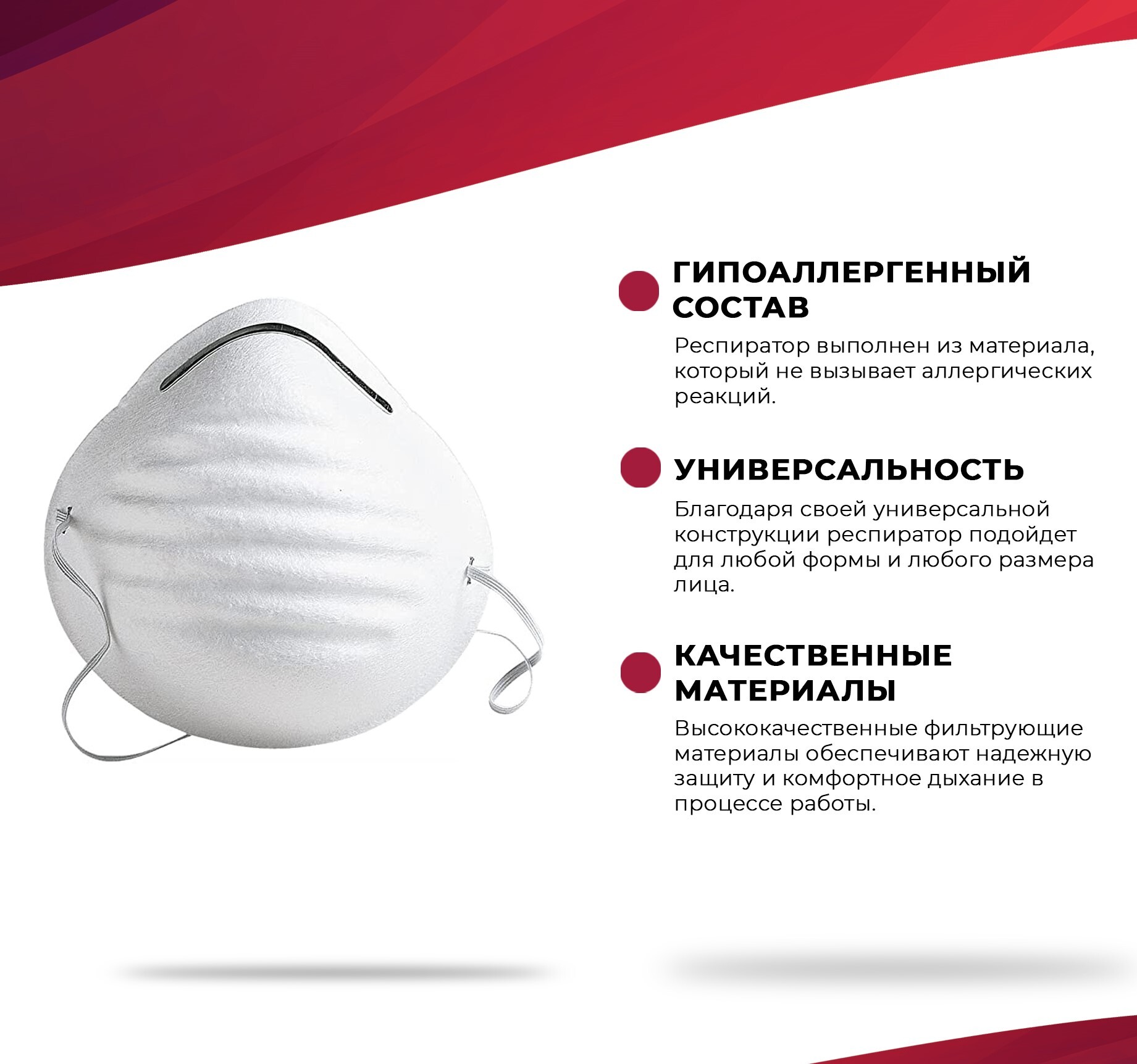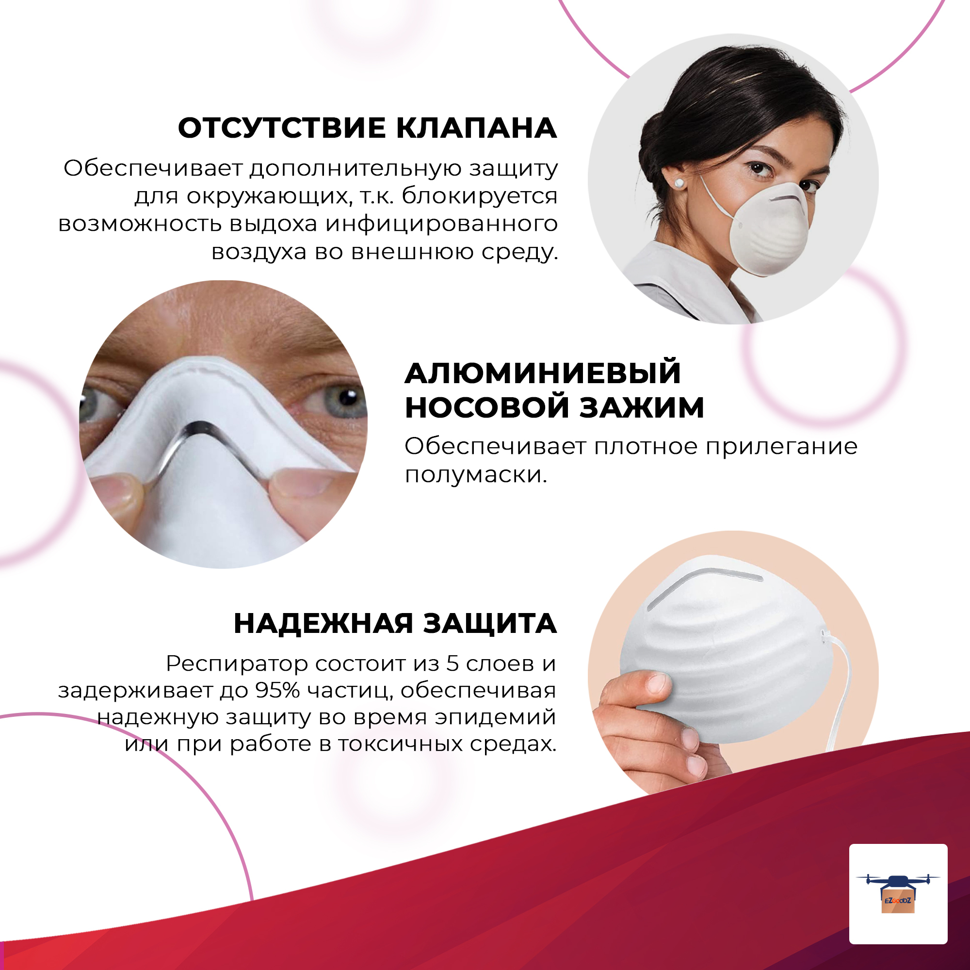 Представляем вашему вниманию респиратор медицинский одноразовый белый, в упаковке 50 штук. Регулируемый носовой зажим для плотного прилегания полумаски. Универсальный размер - возможность применять респиратор независимо от формы и размера лица. Высококаче