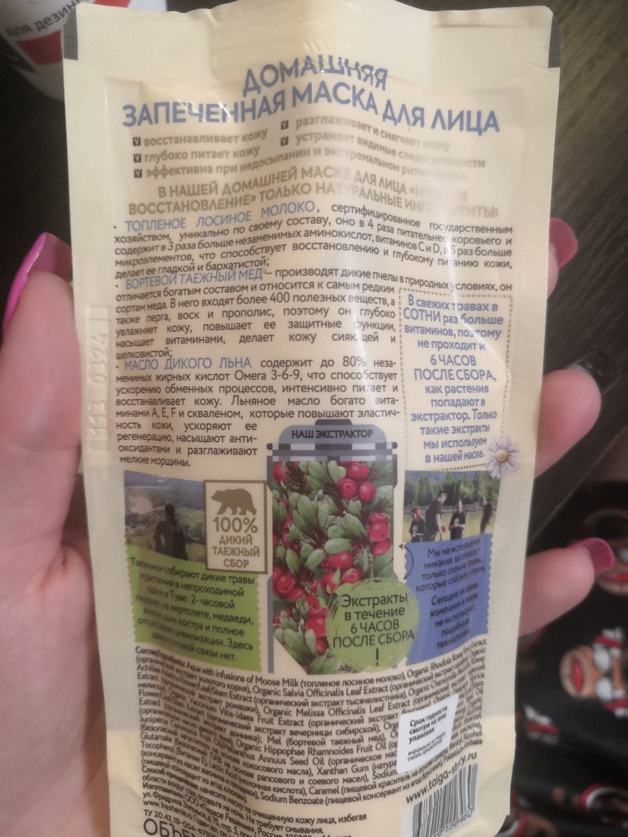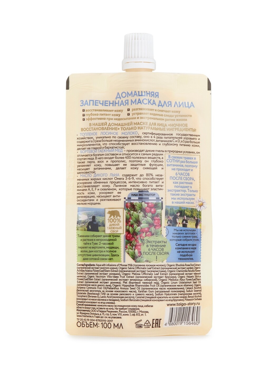 Состав:Aqua with infusions of Moose Milk (топленое лосиное молоко), Organic Rhodiola Rosea Root Extract (органический экстракт золотого корня), Organic Salvia Officinalis Leaf Extract (органический экстракт шалфея), Organic Achillea Asiatica Flower/Leaf/S