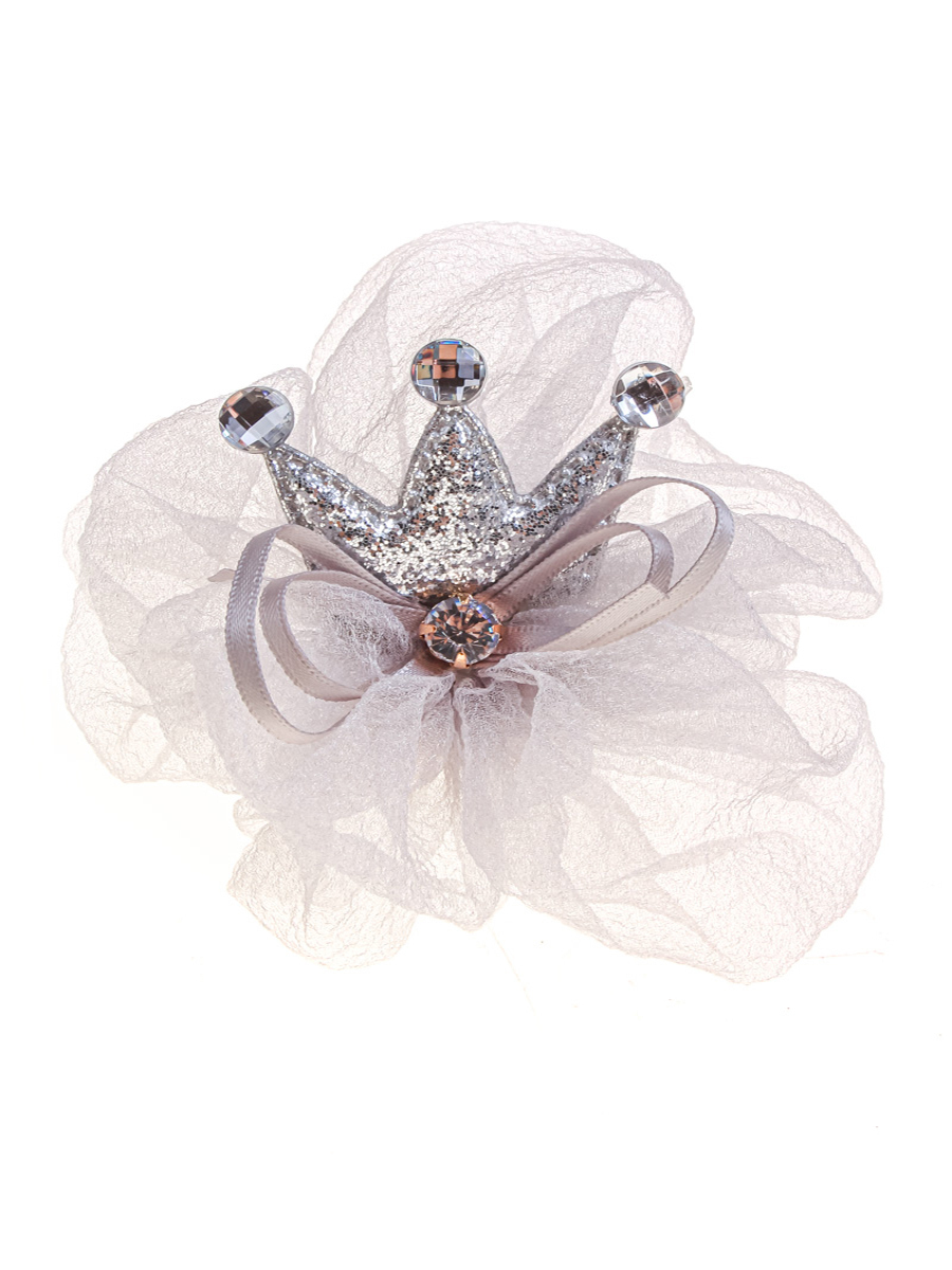 Резинка для волос бант с короной "Маленькая принцесса". Габариты: диаметр 4 см Состав: текстиль,полиуретан.