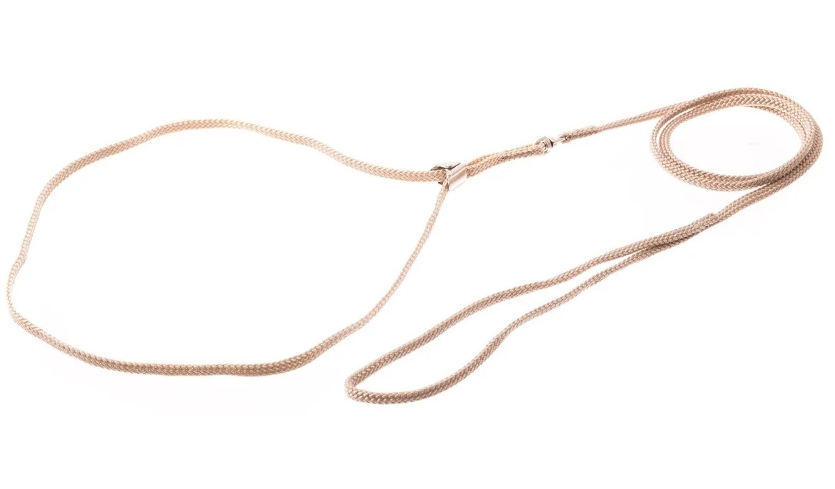 Ринговка - совмещенный вариант ошейника и поводка, специально предназначенный для показа собак на выставочном ринге. Вращающийся вертлюг предотвращает перекручивание ринговки. Не натирает шею питомцу, длина удобно регулируется специальным приспособлением