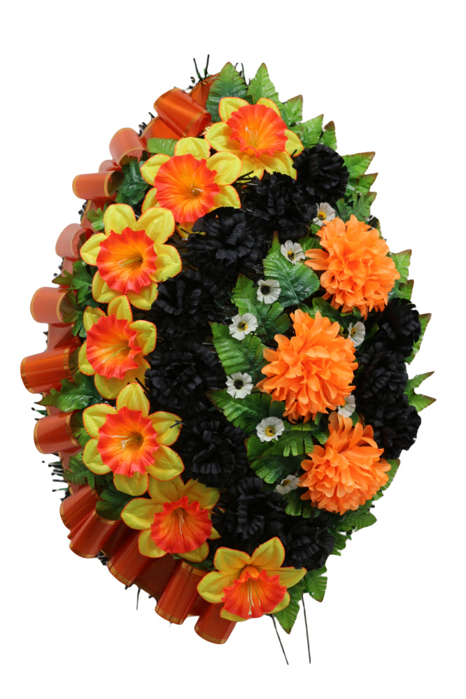 Ритуальный венок выполнен из материалов высокого качества. Вся наша продукция в широком ассортименте изготавливается вручную, профессиональными флористами. Цветы, листья, декоративные элементы насыщенных, ярких цветов и выглядят как живые. Ритуальная комп
