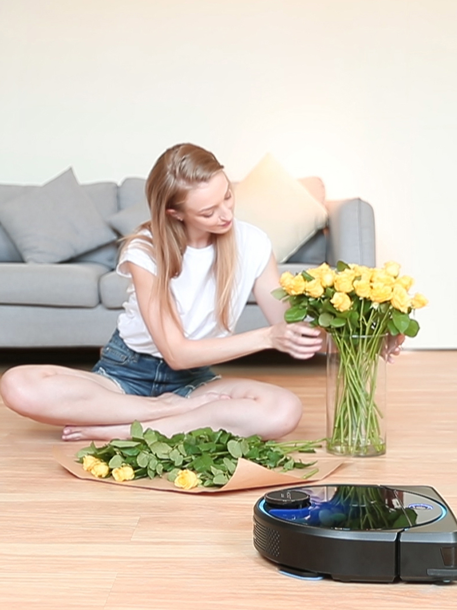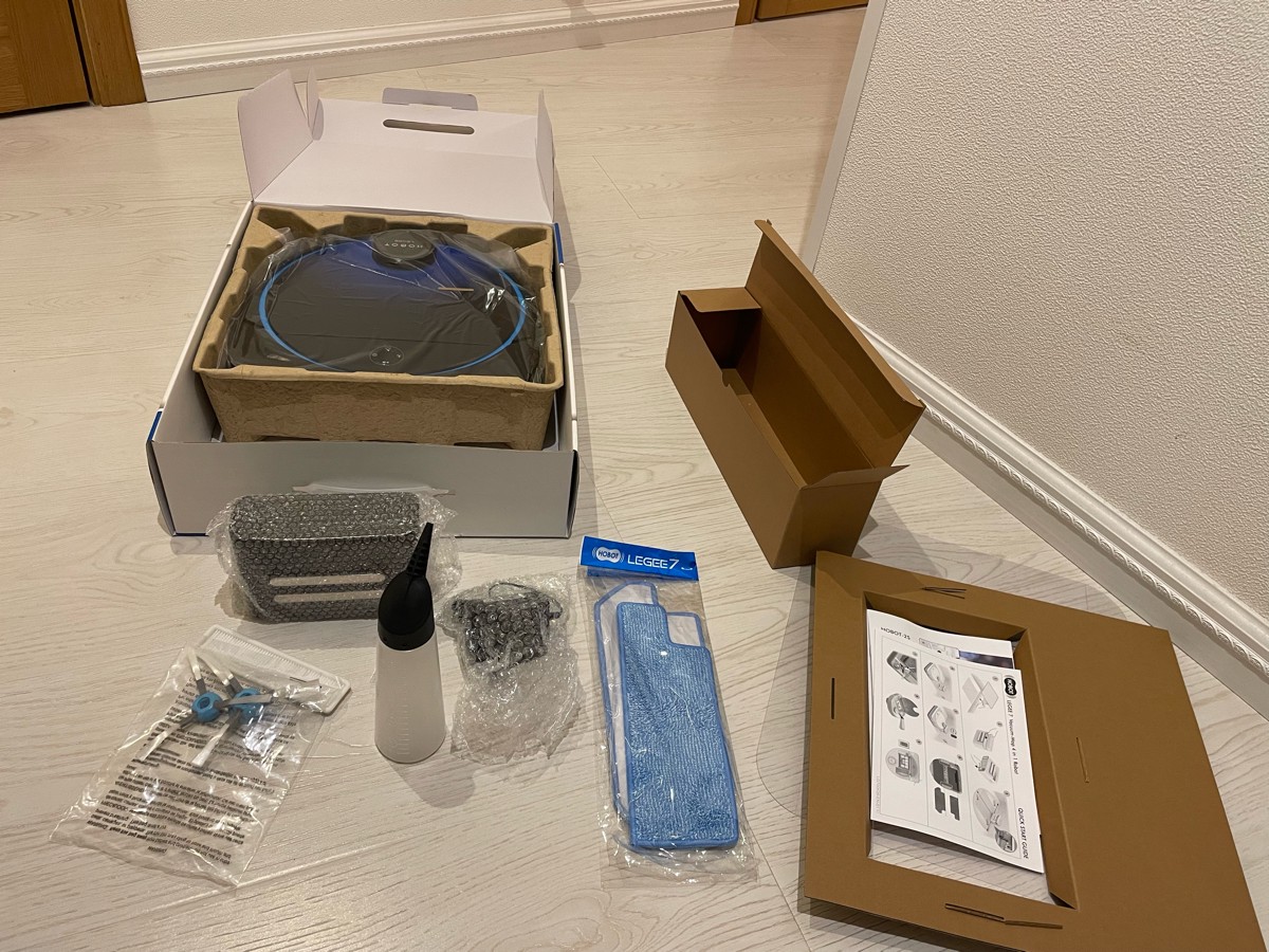 Комплектация:Робот-пылесос, зарядная базовая станция, пульт дистанционного управления,дополнительный фильтр для очистки воздуха, набор из трёх лопастных щёток, комплект из двух салфеток для сухой уборки, комплект из двух салфеток для влажной протирки пола