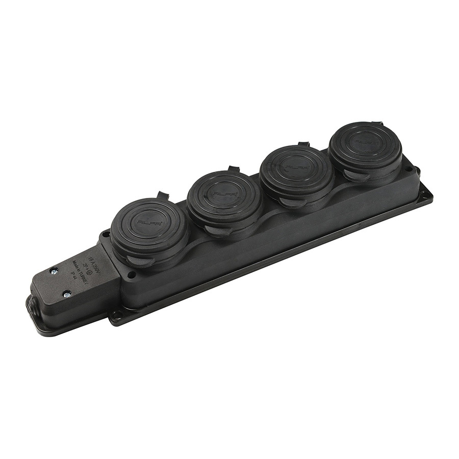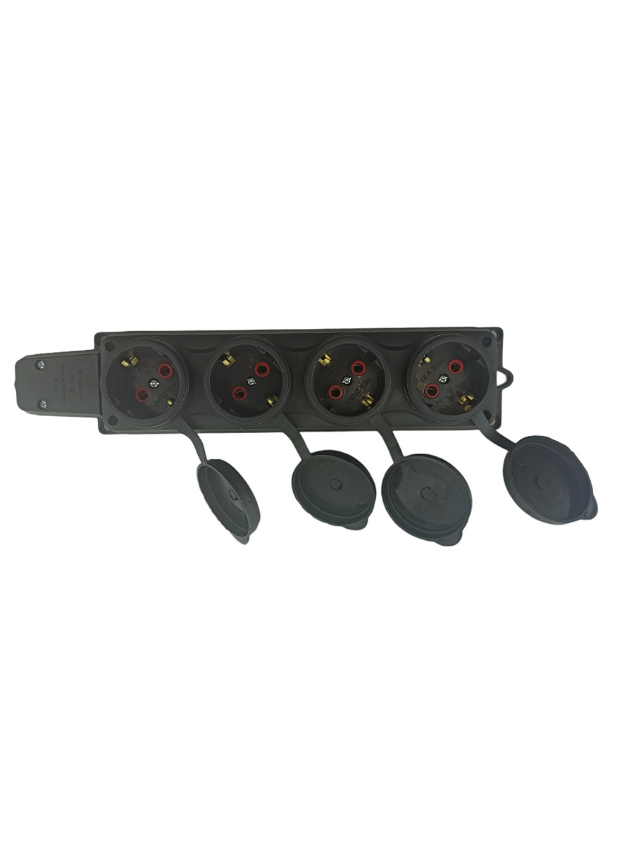 Колодка каучуковая на 4 гнезда с заземлением предназначена для подключения электрических приборов к сети в сложных эксплуатационных условиях к сети током до 16А. Применяются в производстве, строительстве, подходят для бытового использования, внутри и снар